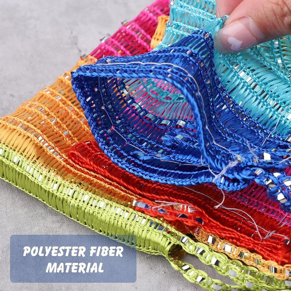 Hand wash or spot clean only to preserve the shimmering strands and overall durability.