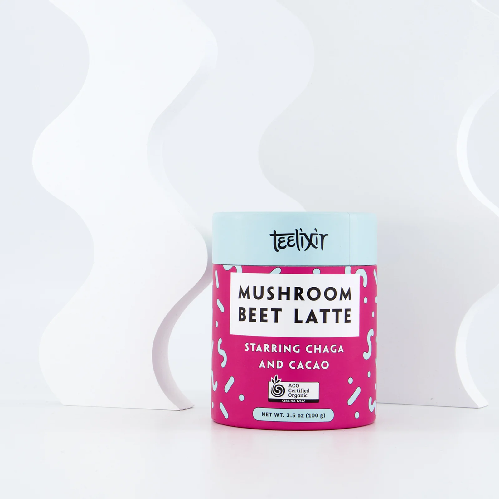 Teelixir's Mushroom Beet Latte offers a unique, caffeine-free experience that combines the nutritional benefits of Beetroot and the rich taste of Cacao, with the wellness support of Chaga mushroom. This blend is a commitment to organic, balanced wellness, providing a flavourful alternative to caffeinated drinks. Chaga, with its earthy essence, enhances the latte's flavour profile, reminiscent of its historical role as a coffee substitute during coffee shortages in World War II Finland, offering soldiers warmth and comfort in the cold.
