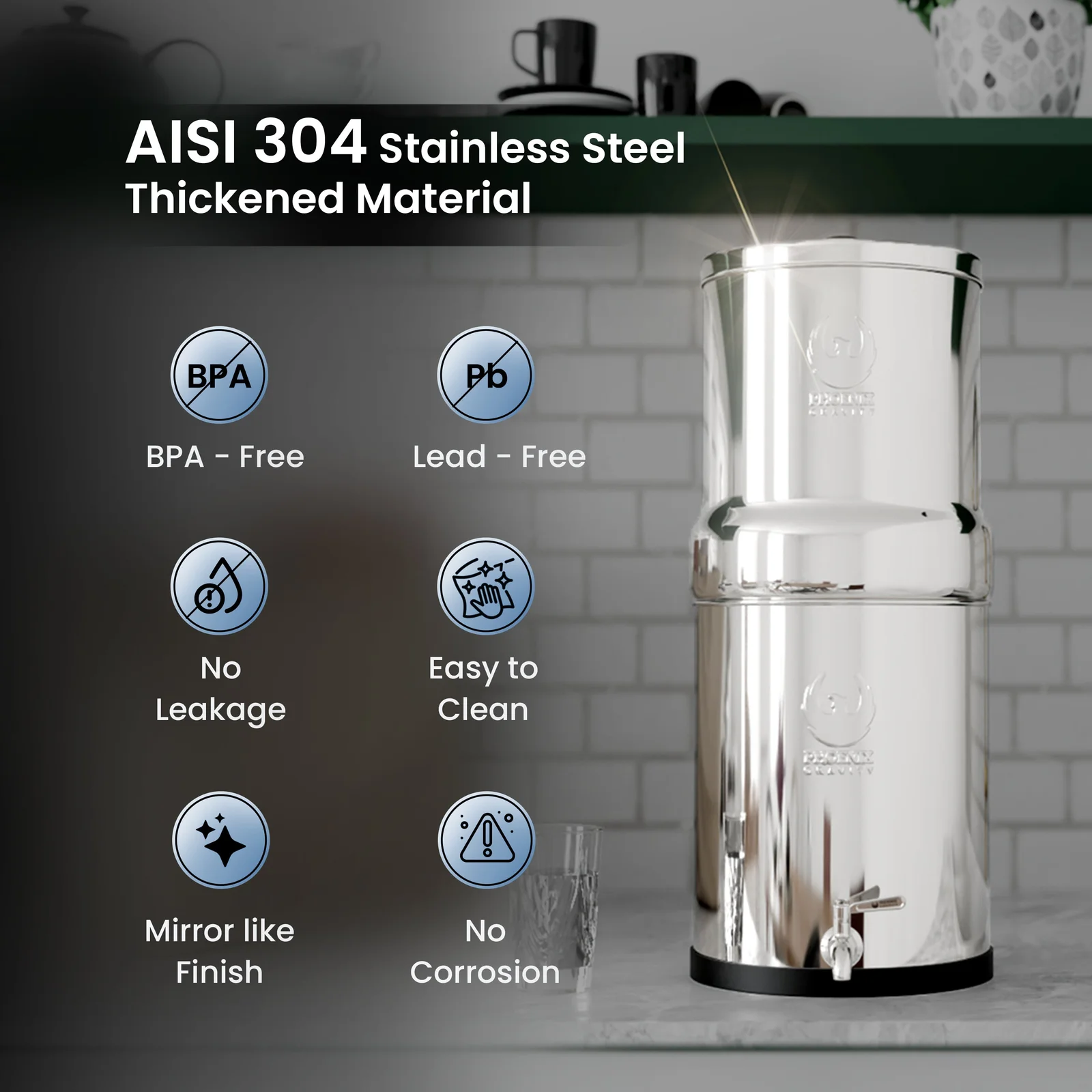 Advanced and sustainable on-the-go gravity filtration removes 99.99% of contaminants while retaining the nutrients your body needs. Perfect for travelling, hiking, camping - or whenever you need it most.