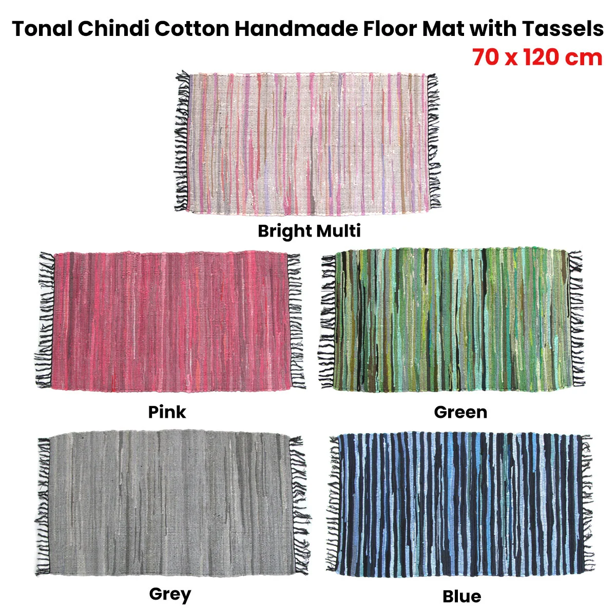 Bring a touch of style to your home with the Tonal Chindi Cotton Handmade Floor Mat with Tassels 70 x 120 cm! Handmade woven floor mat with random pattern, tassels are uneven length. This unique mat features woven design with a playful tassels accent that adds a touch of whimsy, and the soft cotton feels great under bare feet. A beautiful, textured floor mat that's as easy on the eyes as it is on your feet.