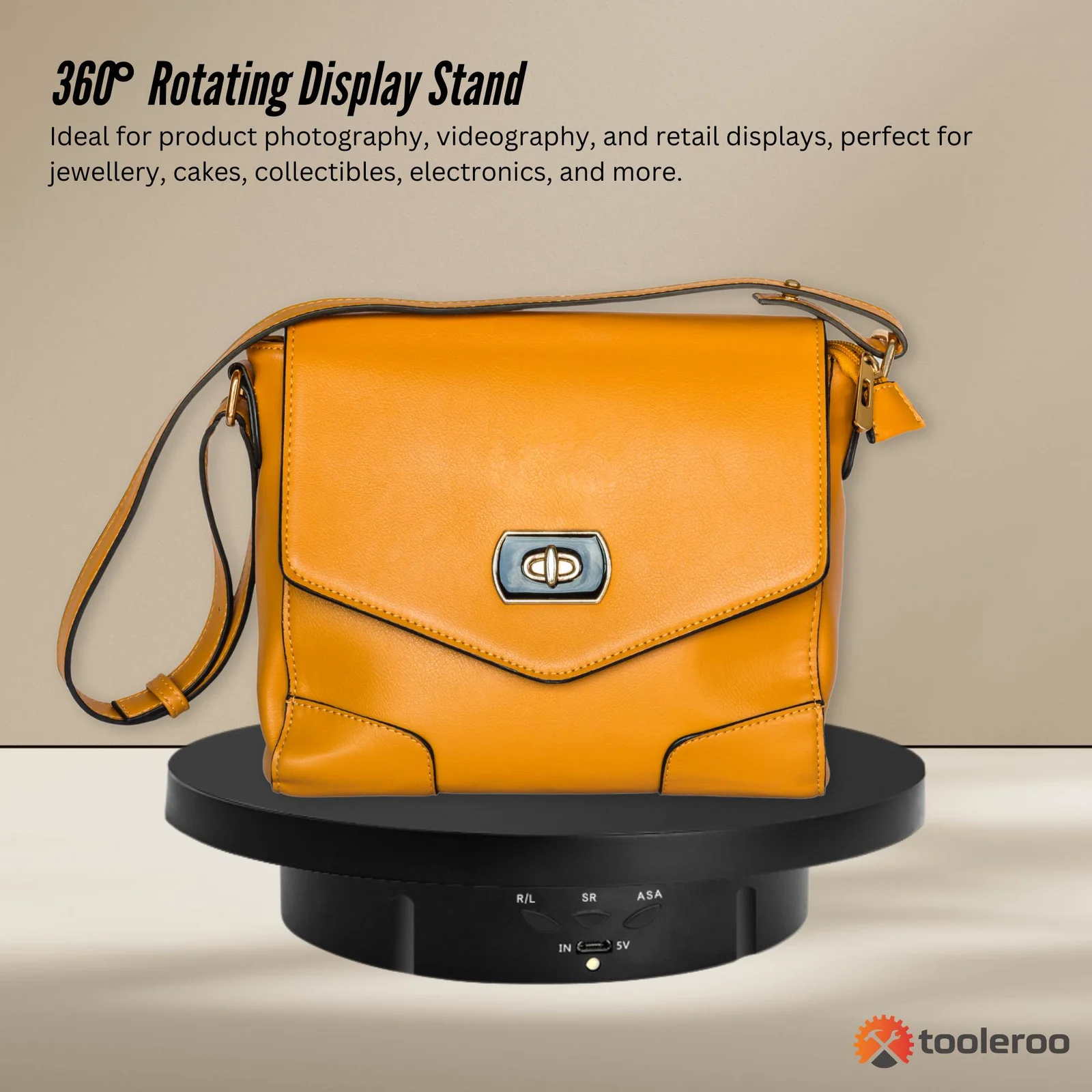 - 360° Rotating Display Stand – Ideal for product photography, videography, and retail displays, this electric turntable ensures smooth and quiet rotation, perfect for jewellery, cakes, collectibles, electronics, and more.