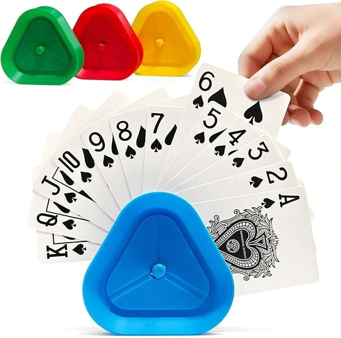 Enhance your family game nights with this set of four triangle playing card holders. Designed to make card games more accessible and enjoyable for players of all ages, these holders are suitable for Australian homes, assisting children with small hands and adults who prefer a hands-free gaming experience.