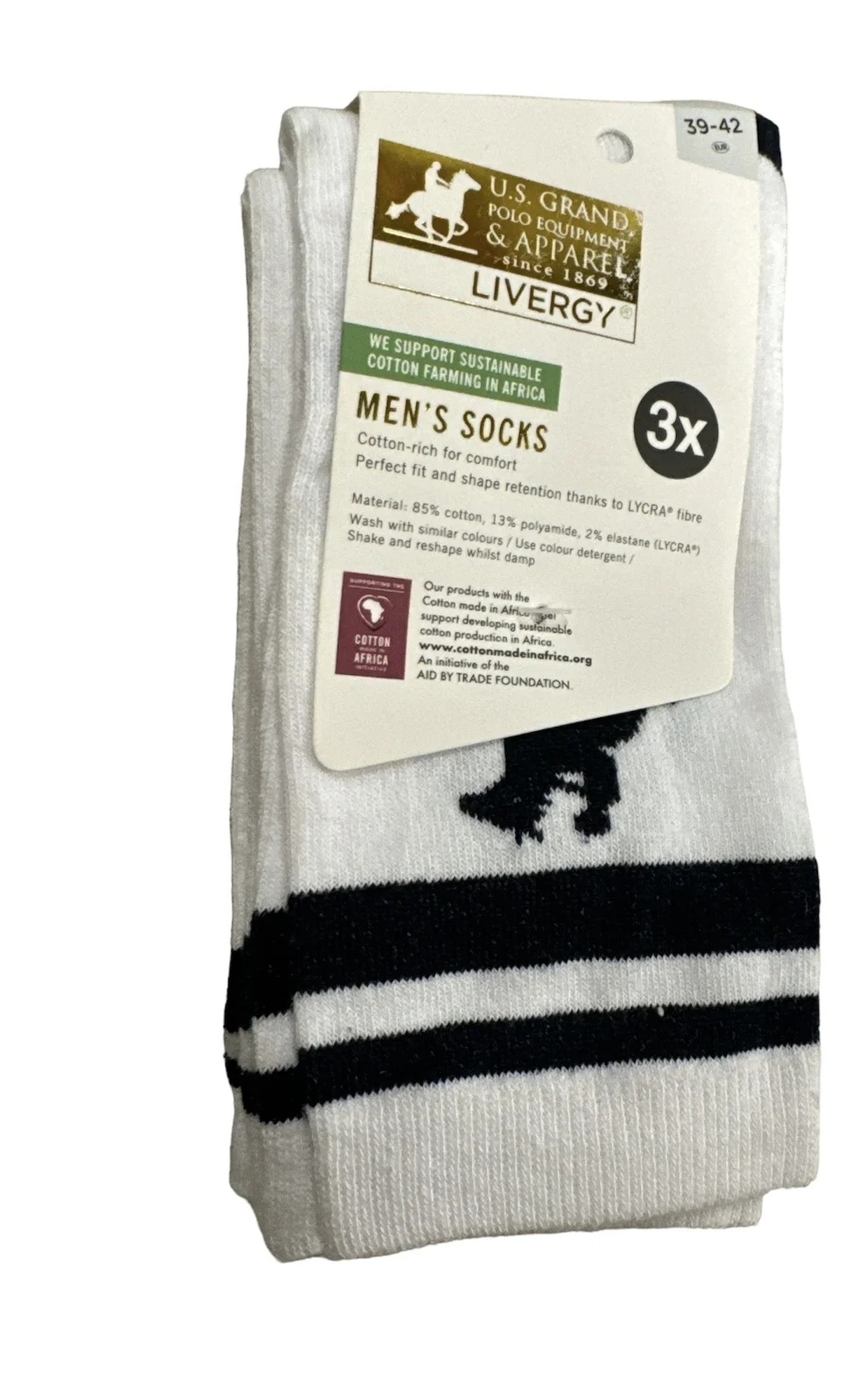 With U.S. Polo Assn. Livergy Men's Crew Socks, you're not just buying comfort, you're also buying a piece of the prestigious Polo legacy. Add this 3-pair pack to your collection today!