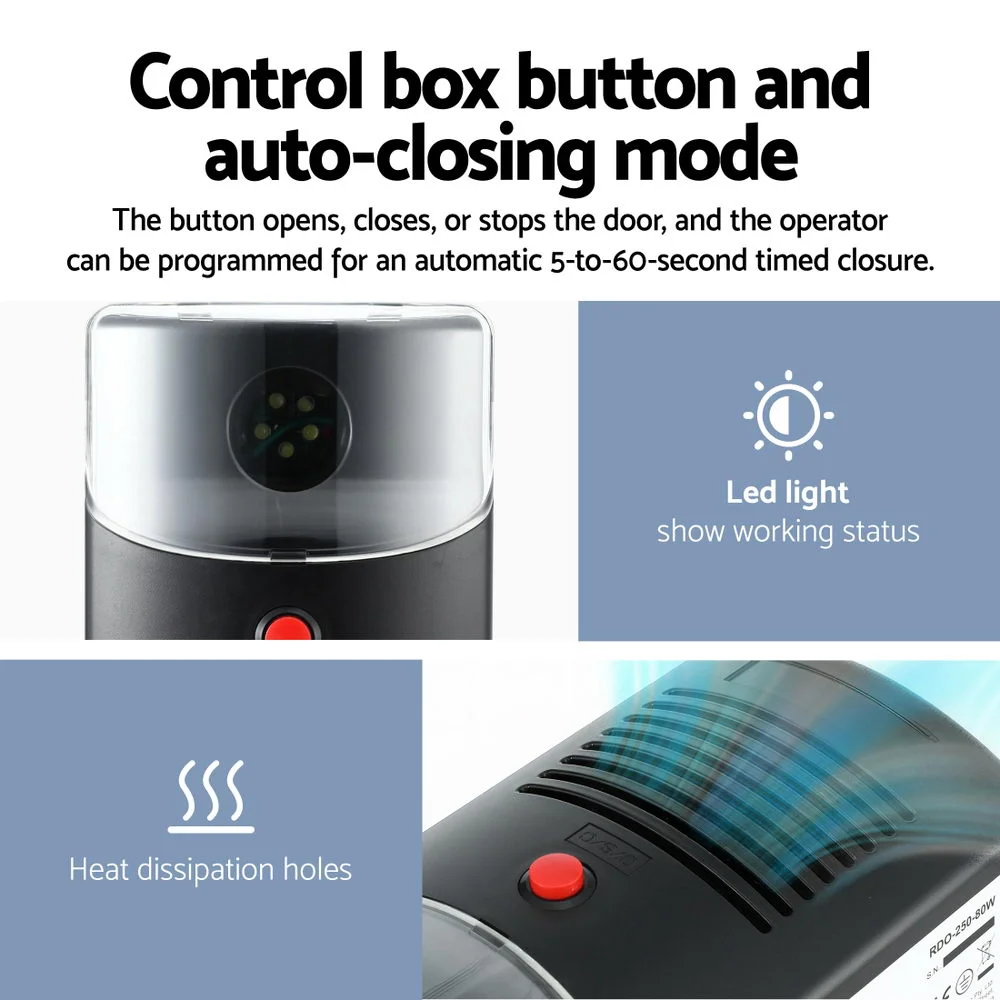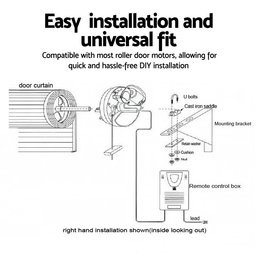 The UL-tech Automatic Roll Up Door Opener is a powerful and reliable solution for automating your garage, barn, or warehouse roller doors. Featuring a robust 250N motor, this opener is designed to handle doors up to 25m? with smooth and quiet operation. It comes with two remote controls for convenient access from a 50m distance, and its quiet, low-vibration motor ensures minimal disturbance. The system includes an automatic safety reverse system and a manual release cable for power outages, ensuring both security and peace of mind. With its "soft start/soft stop" function, the motor reduces stress on the door, prolonging its lifespan. The included mounting hardware and easy installation make this a great choice for both commercial and residential applications.