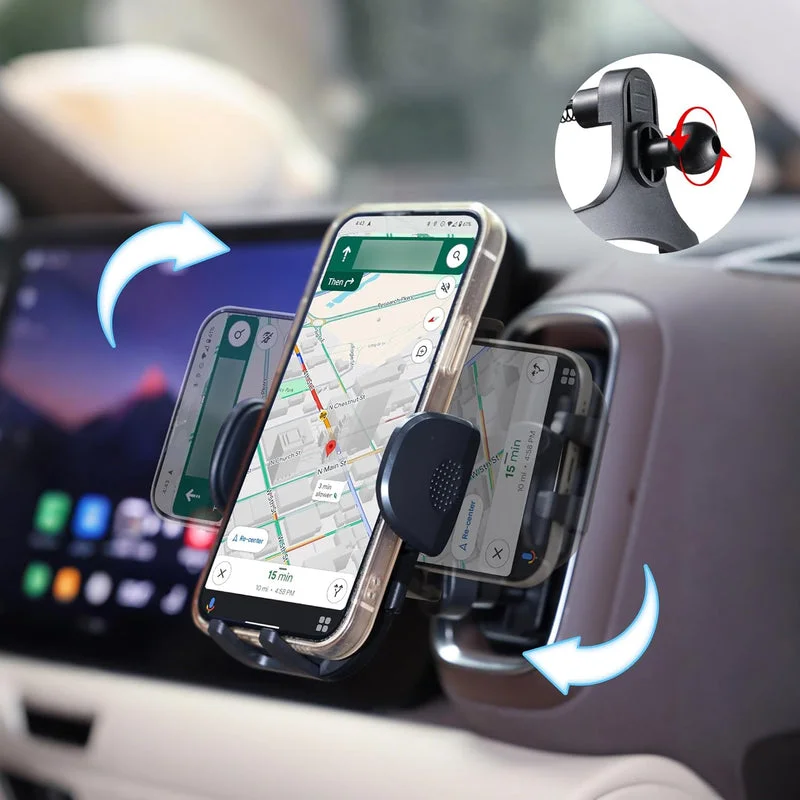 - 4-in-1 Universal Mount – Attaches to dashboard, windshield, vent, or desk for flexible use