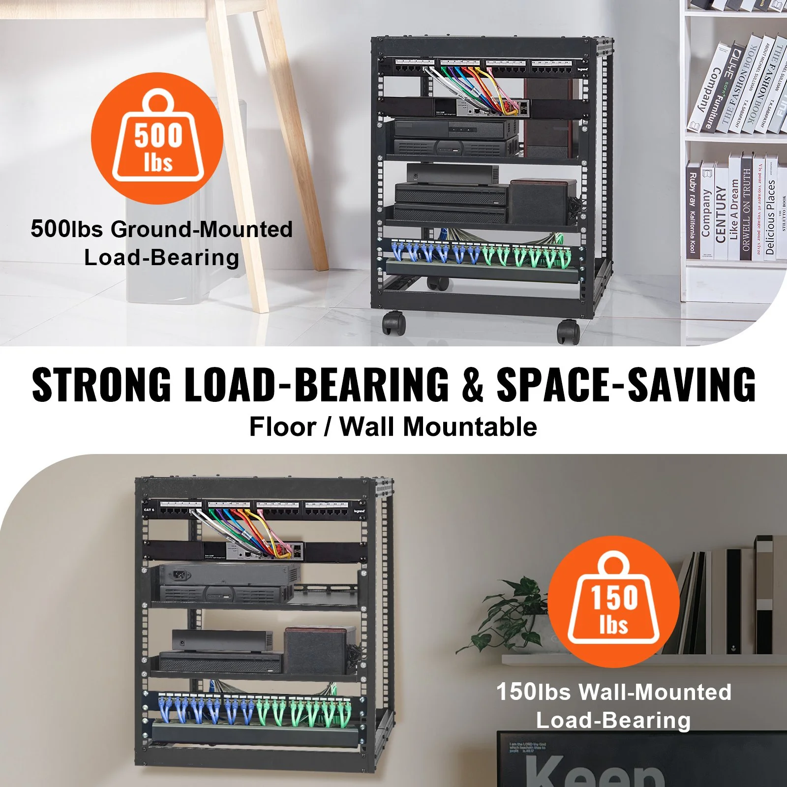 Ground-Mounted Load Capacity: 500 lbs, Wall-Mounted Load Capacity: 150 lbs. The av rack is made of carbon steel for better weldability performance and can help save space while meeting your need to place multiple devices.
