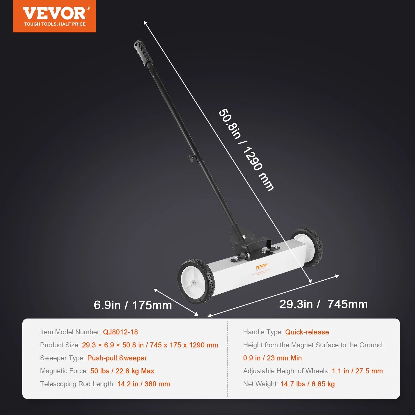 Crafted from high-quality materials such as aluminum, plastic, magnet, and iron, the push-pull magnetic sweeper is built to withstand the rigors of demanding worksites. Its durability guarantees long-term, reliable performance, providing you with a valuable tool for ongoing cleanup tasks.
