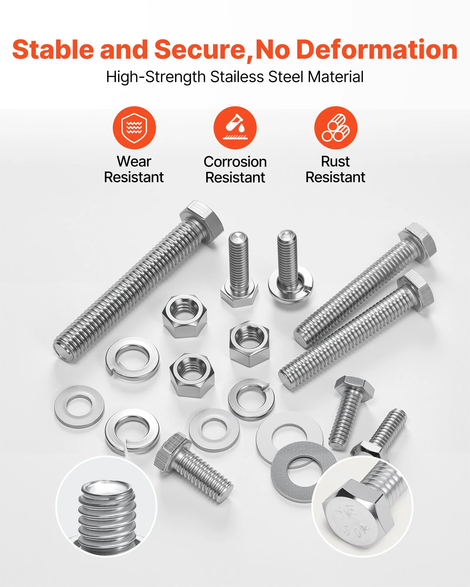 Each component is precisely machined to meets A2-50 grade mechanical performance. With a 48-hour salt spray test, these bolts and nuts provide reliable fastening and won’t loosen or degrade over time