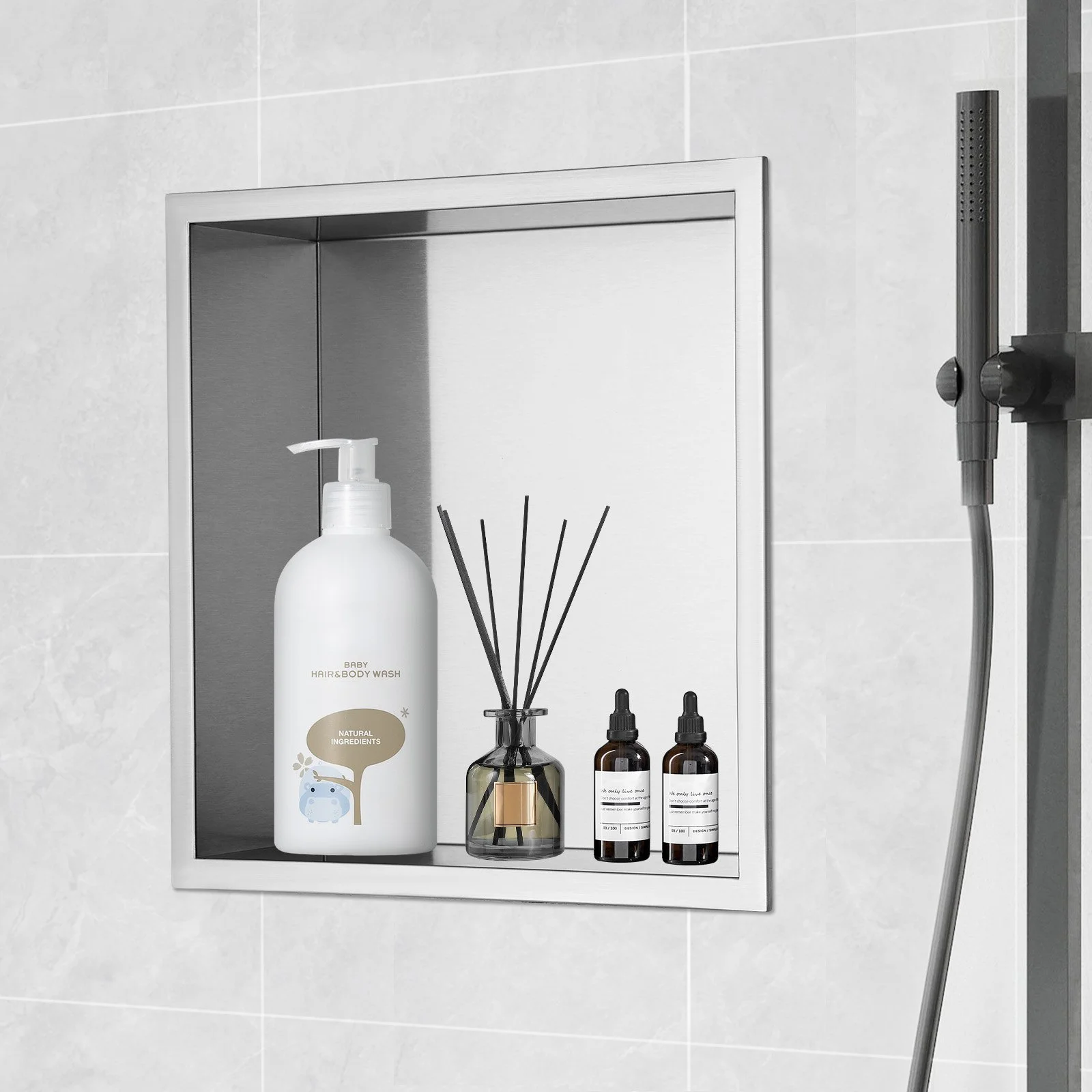This shower niche is made of high-quality 304 stainless steel, resistant to rust and fading, ensuring durability. It is less prone to decomposition, rot, or mold growth, making it ideal for humid bathroom environments. It maintains its appearance and performance over time and is less likely to deform or get damaged with long-term use.