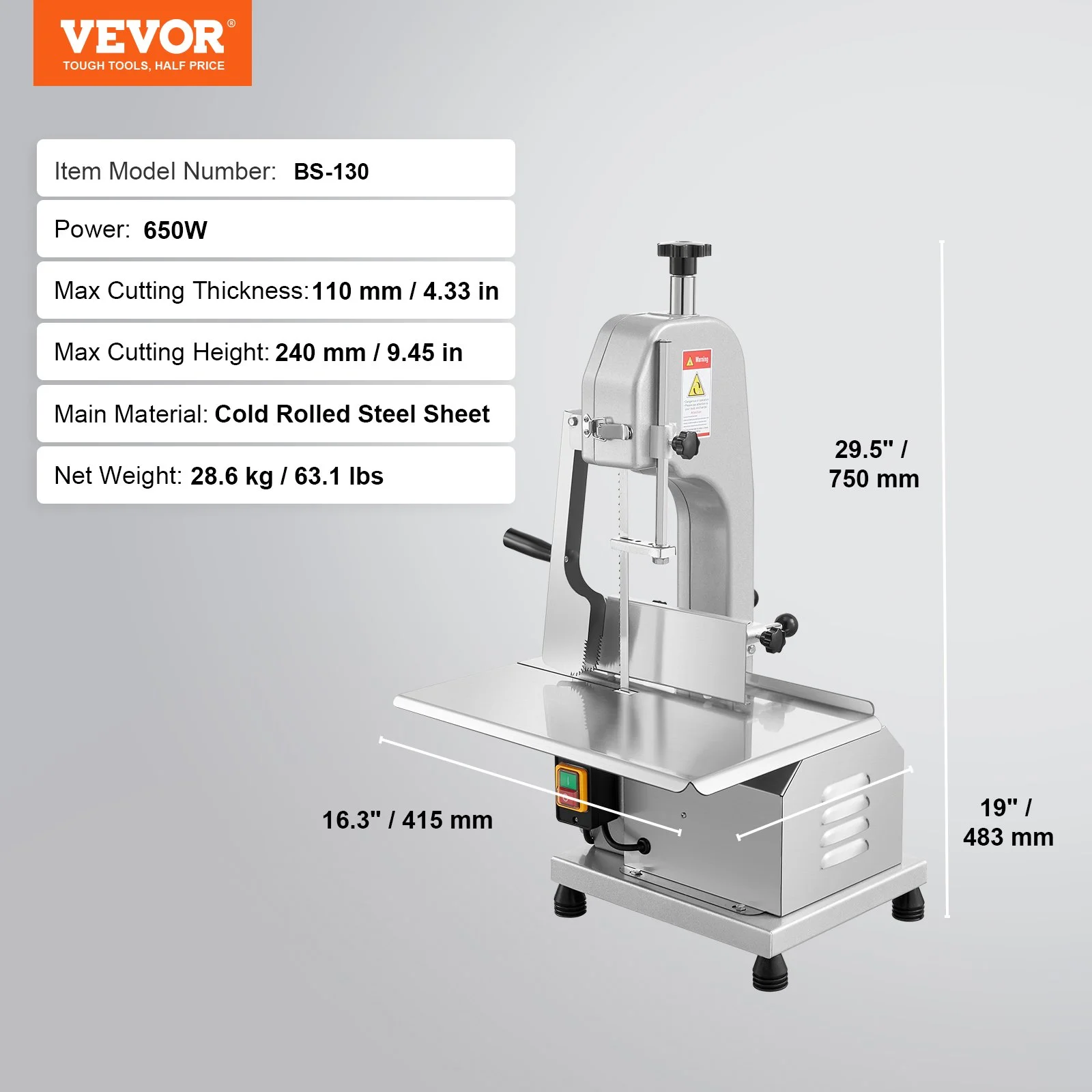 Our electric meat bandsaw cuts smoothly without jamming, allowing you to easily cut various frozen meats, fish, and small ribs with a gentle push. The 650W pure copper motor provides impressive power, and the sharp stainless steel saw blade, along with precision gears, ensures a high cutting efficiency.