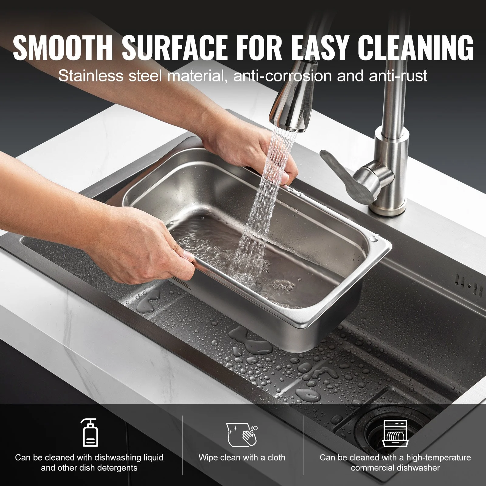 Our hotel steam pan is made with 0.8mm thick stainless steel, making them sturdy, durable, and rust-resistant. The unique anti-stacking groove design enhances structural strength, making the pan more robust and easy to separate when stacked.