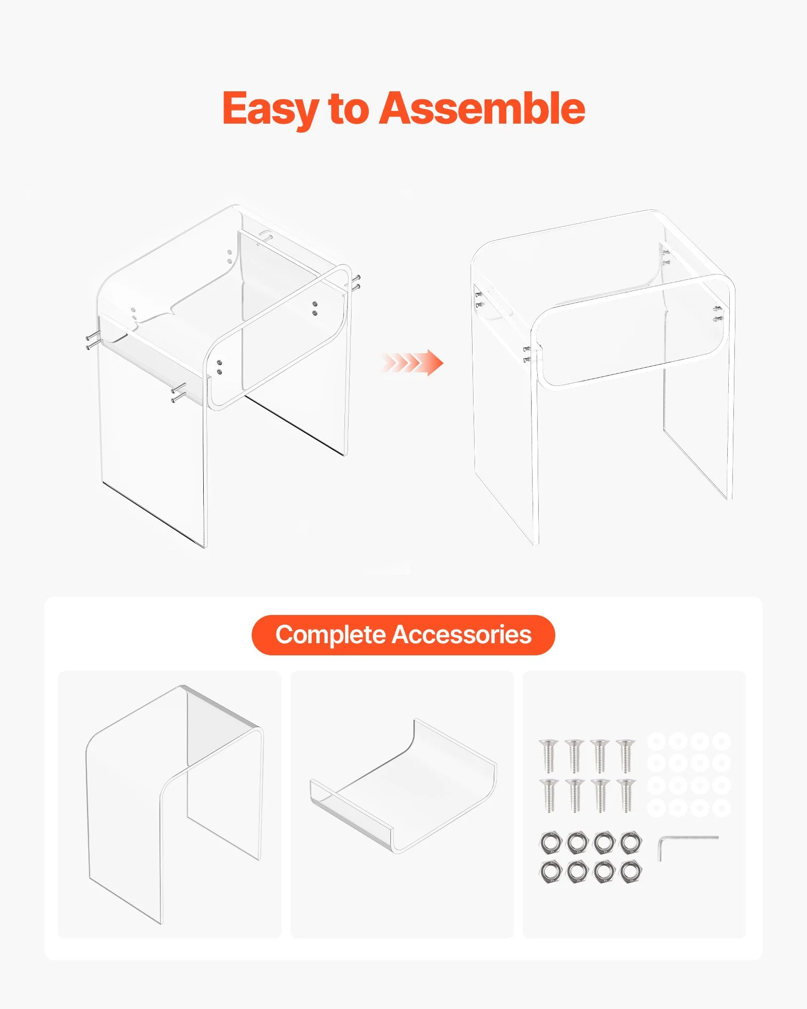 Our acrylic end table has a crystal-like shine with up to 92% light transmission. Its transparency creates openness, even in smaller spaces. It blends with various home styles, ideal for living rooms, bedrooms, entryways, or bathrooms