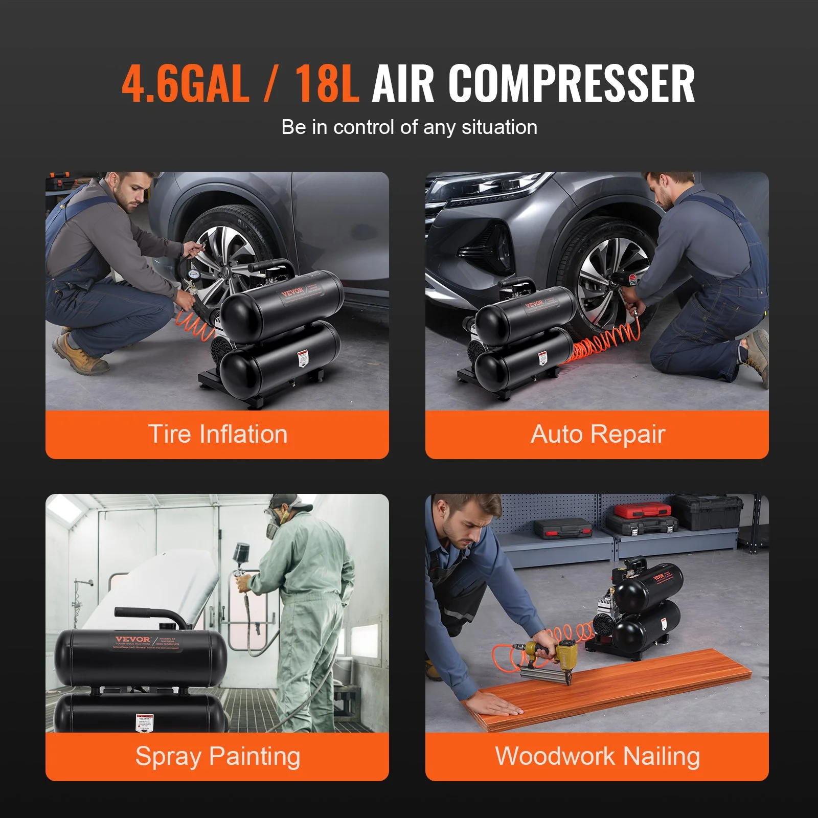 VEVOR Air Compressor Compact Portable Oil Free Compressor 75L 90 PSI