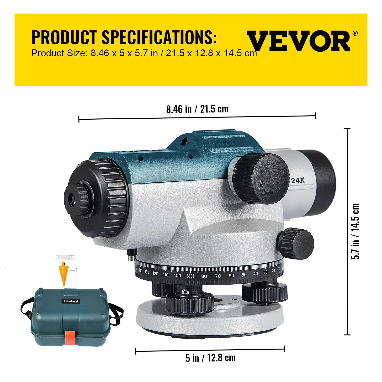 With a 24X magnification lens and 40 mm large aperture, this automatic optical level allows you to acquire a clear and bright image within the range of 393 ft. In addition, it provides excellent accuracy of 1/16-inch at 100 feet.