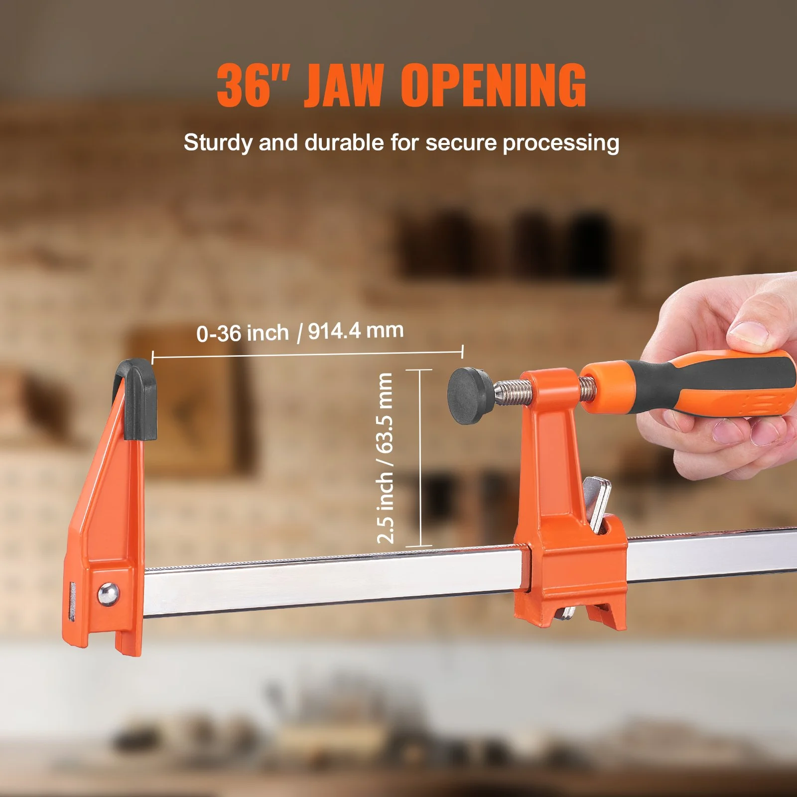 Our bar clamps for woodworking are perfect for most standard-sized woods. The 36-inch length provides users with more adjustment space during operation, resulting in precise positioning of the workpiece.