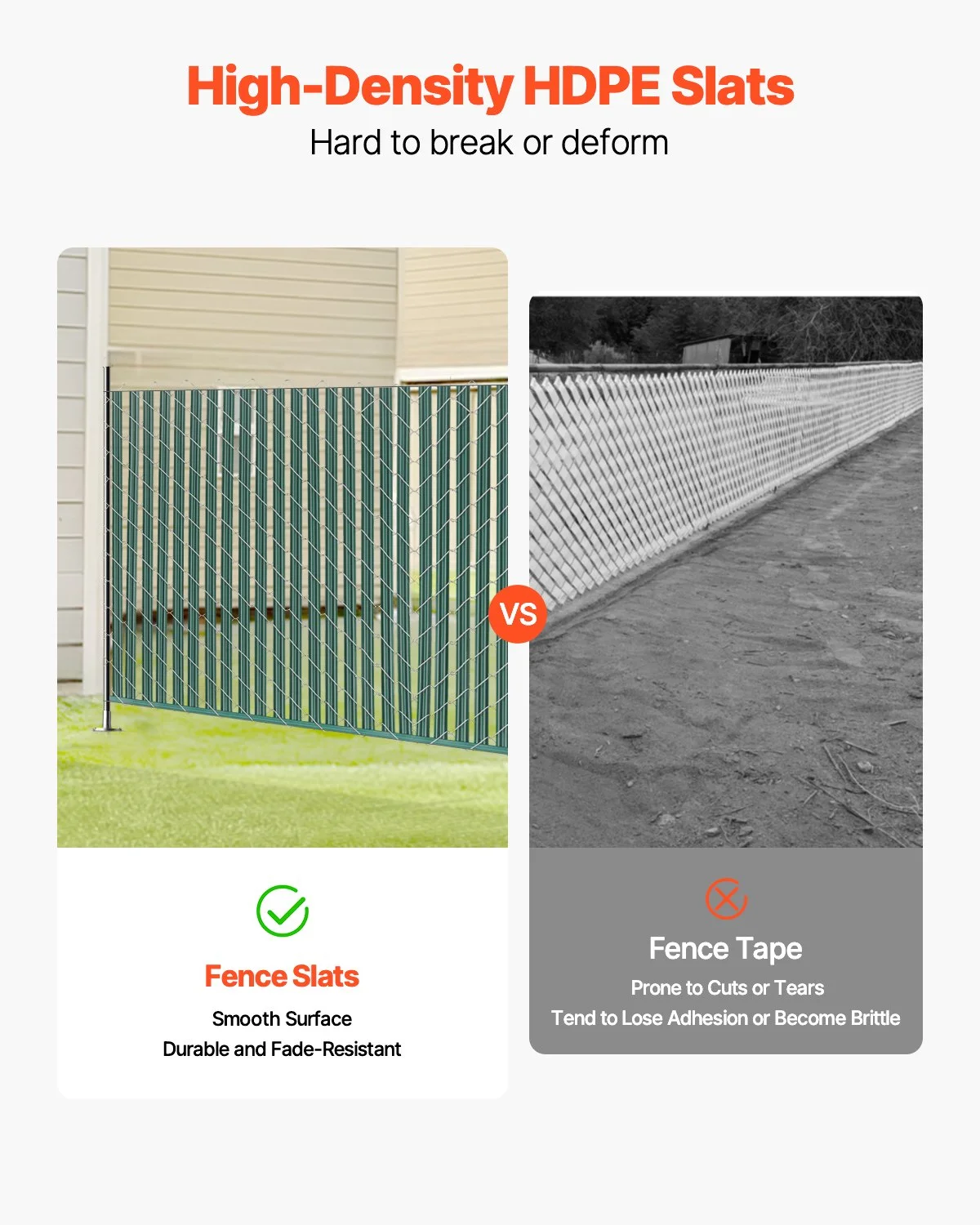 Made from high-density HDPE material, these chain link slats offer excellent weather durability and anti-aging properties. They reduce the risk of cracking or warping due to temperature fluctuations, extending the product's lifespan.