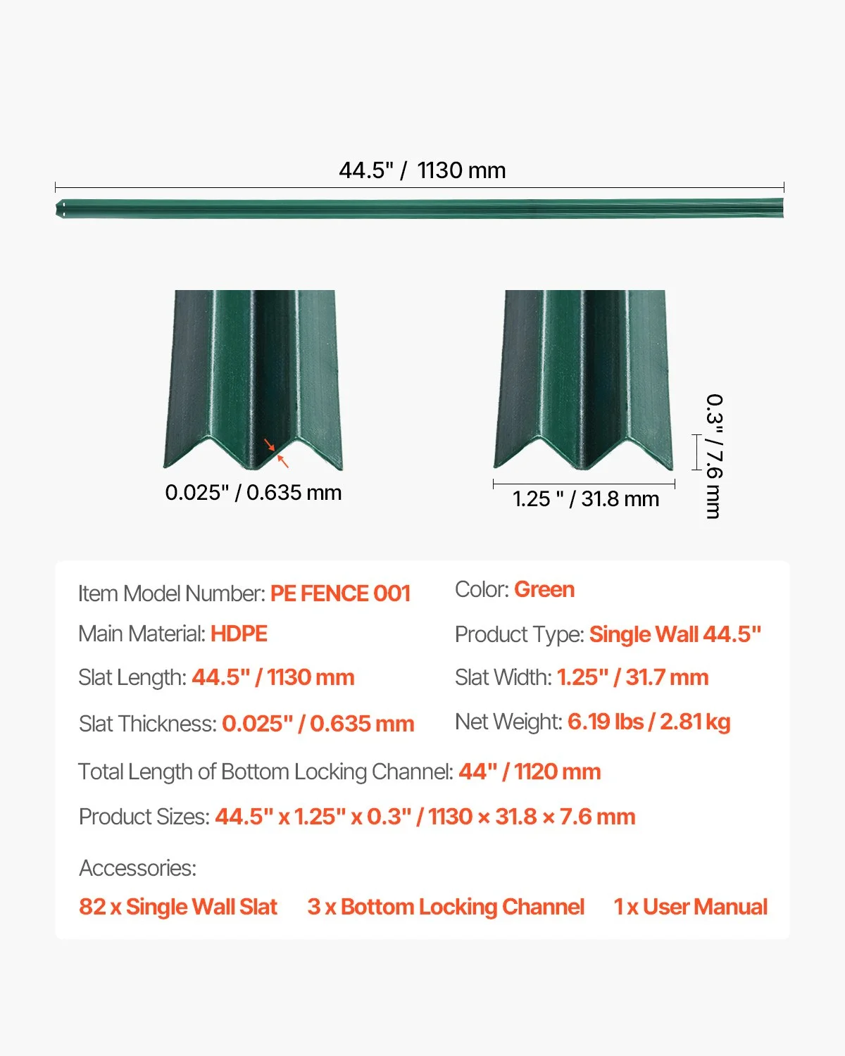 Each box includes 82 single-wall chain link fence slats and 3 pieces of 44" bottom locking channels, specially designed for 10 ft chain link fences.