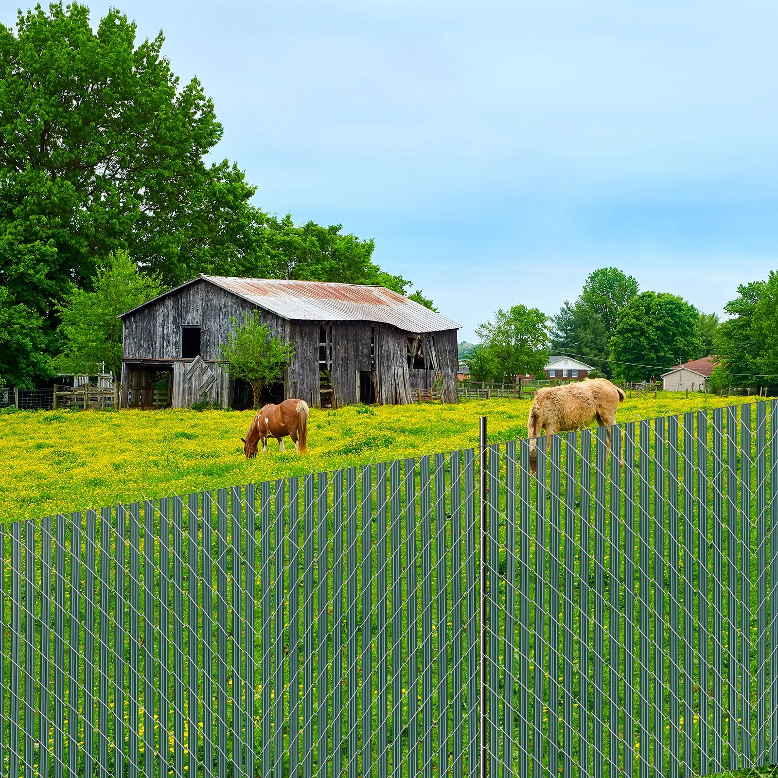 You can choose different levels of privacy protection based on your needs. The 2" chain link provides approximately 85% privacy, the 2-1/4" chain link offers around 80% privacy, and the 2-3/8" chain link provides about 75% privacy. Be sure to measure your chain link fence before placing an order to choose the suitable fence slats.