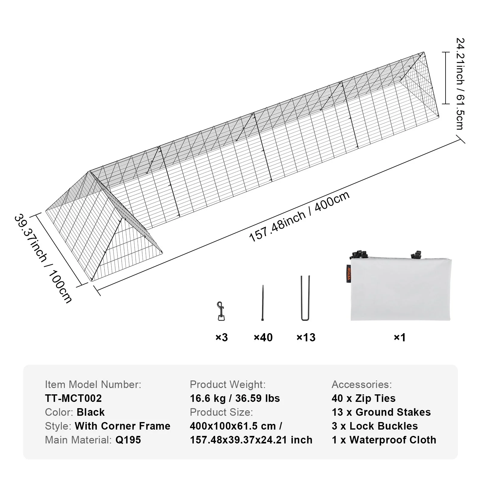 Still worrying about your chicken ruining your vegetable garden? VEVOR chicken tunnel enclosure will protect them from your garden, and they can freely run back and forth. Providing a wide activity area measuring 39.37" wide and 24.2" tall, the VEVOR chicken tunnel offers poultry greater freedom. With a free-range lifestyle ensuring healthy growth, ample space allows them to enjoy a more natural environment.