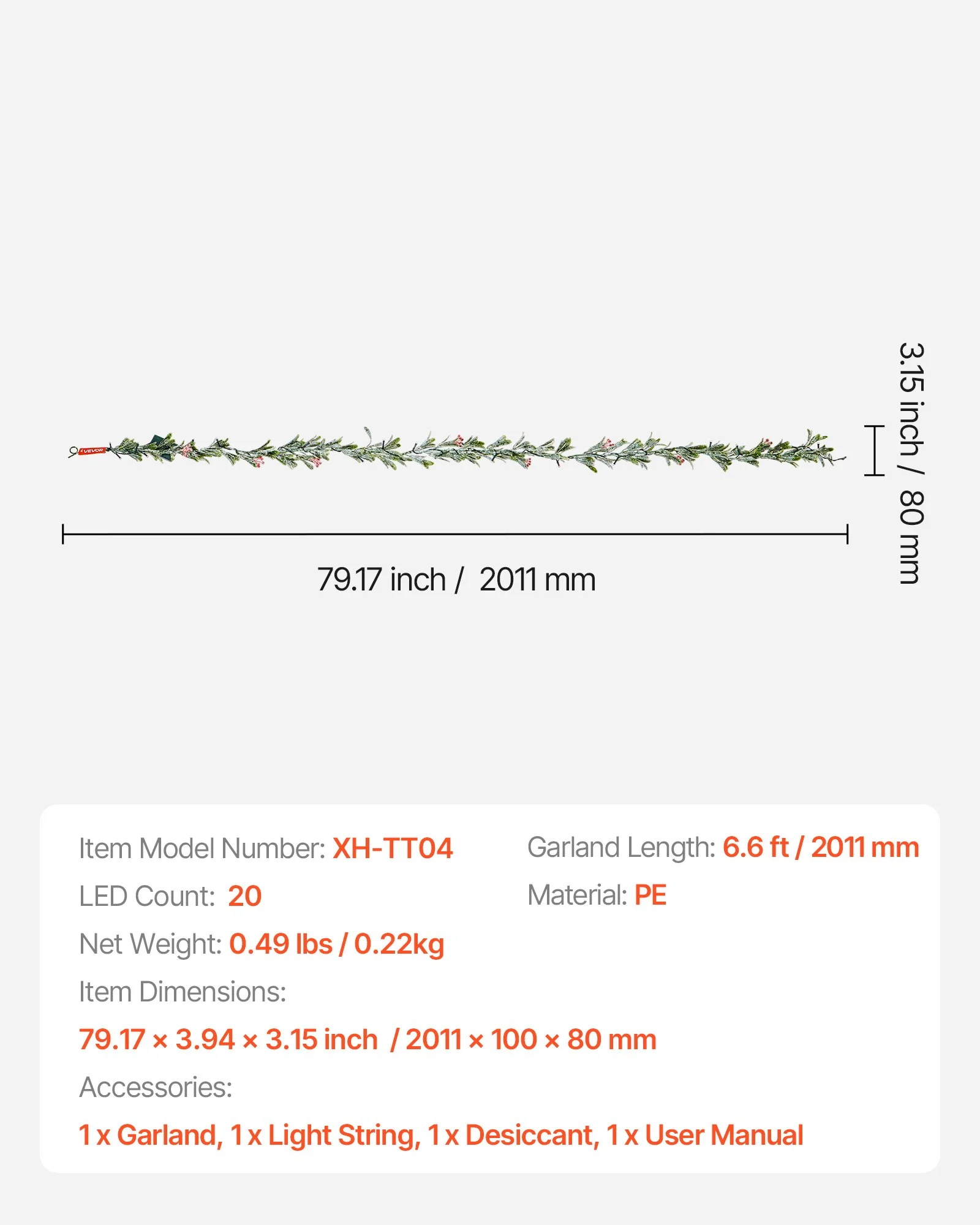 Equipped with 20 warm white LED lights, this greenery garland glows softly at night, creating a cozy and festive atmosphere for your holiday space. Requires 3 AA batteries (not included)