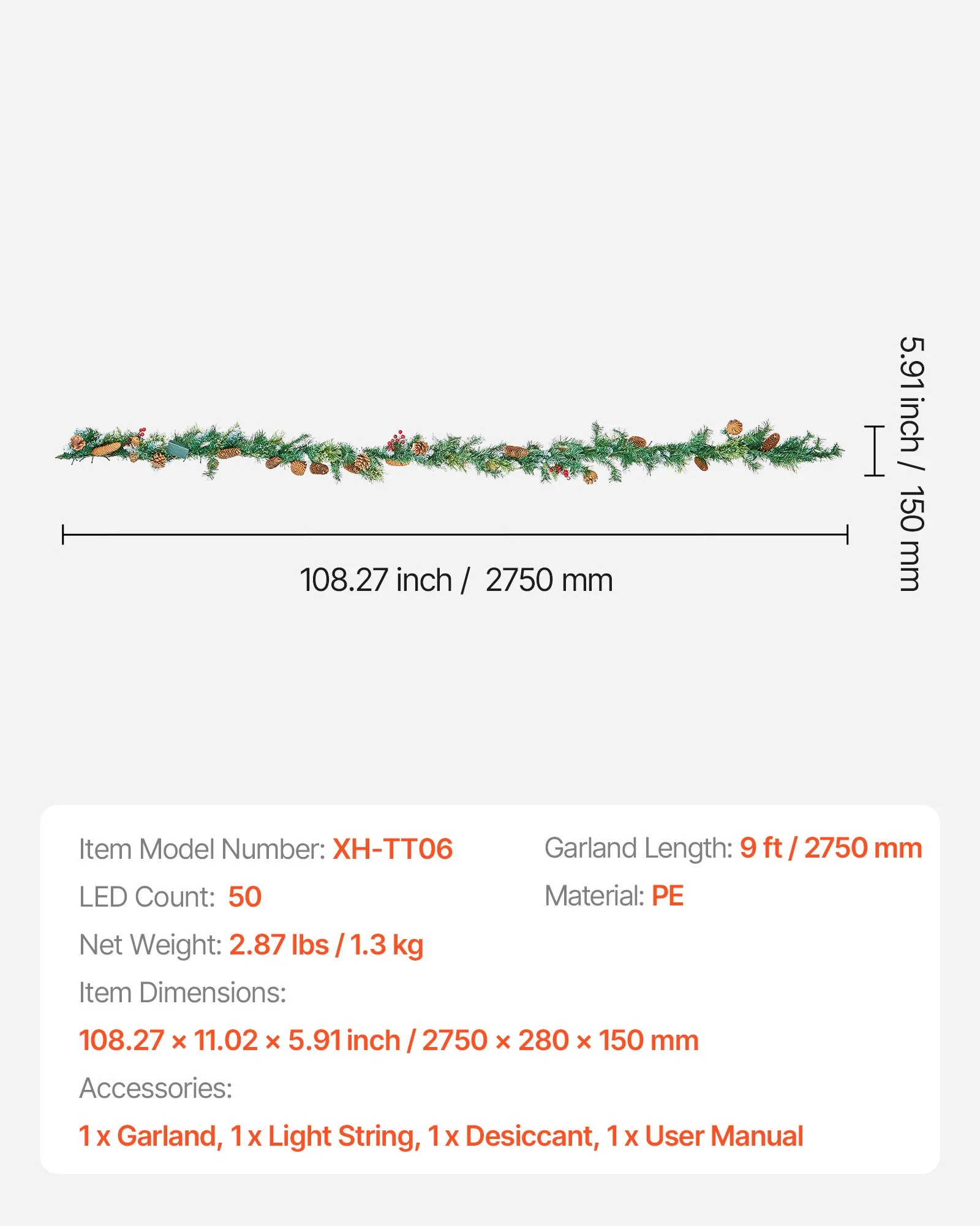 Made from high-quality PE and reinforced with sturdy metal wire inside, this garland is waterproof, fade-resistant, and corrosion-resistant. It holds its shape well and is built to last through repeated seasonal use, even in sun, rain, or snow