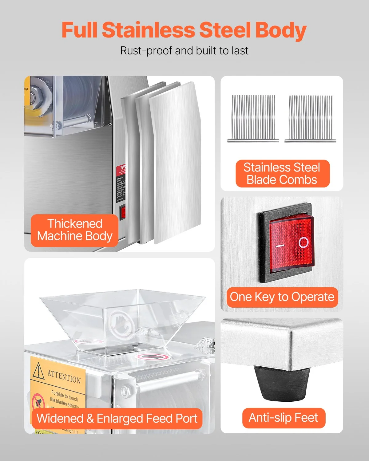 Crafted with high-quality stainless steel, this meat cutting machine resists rust and lasts longer. The anti-slip rubber base helps keep it steady, making it a go-to tool for small businesses, farmer's markets, restaurants, home kitchens, and more.