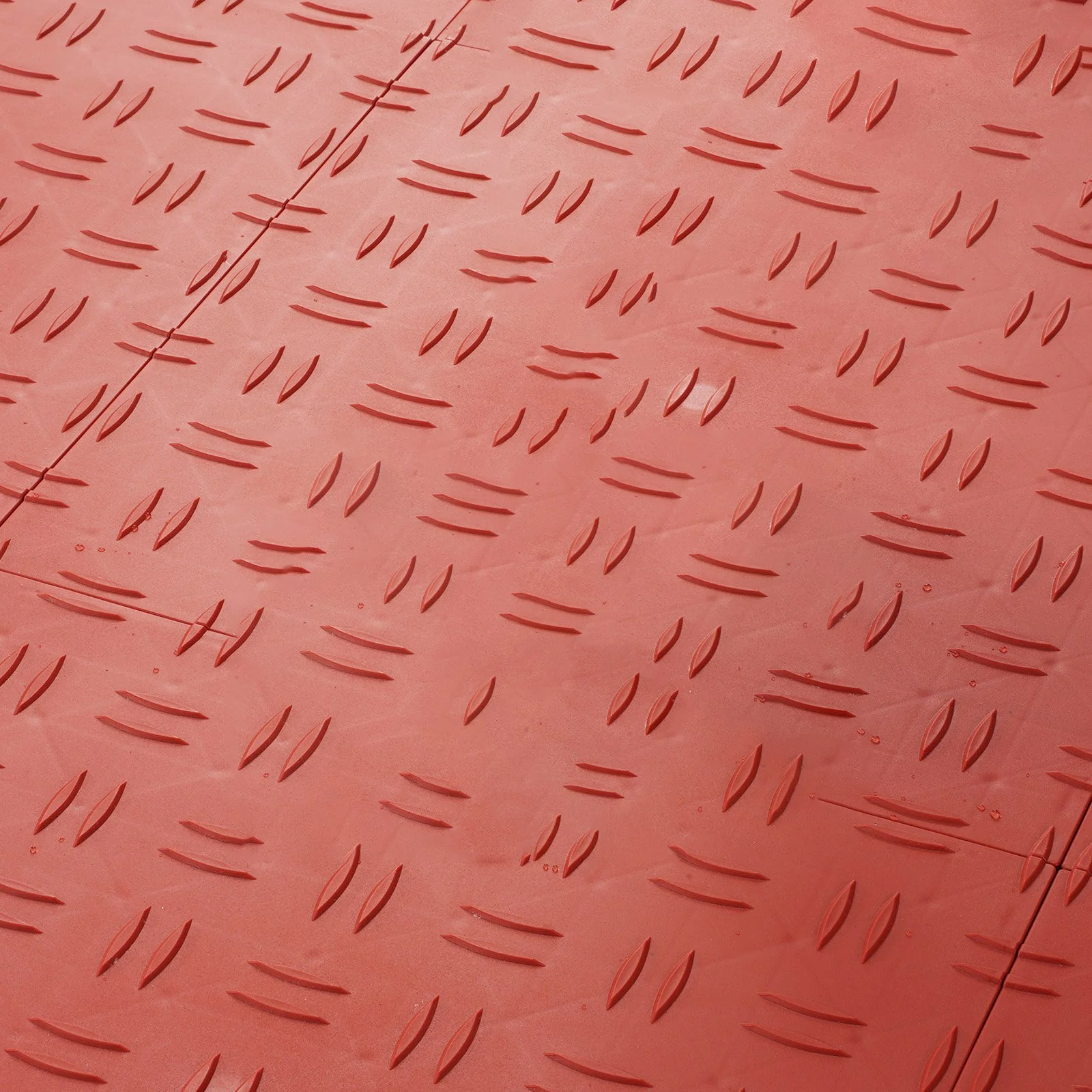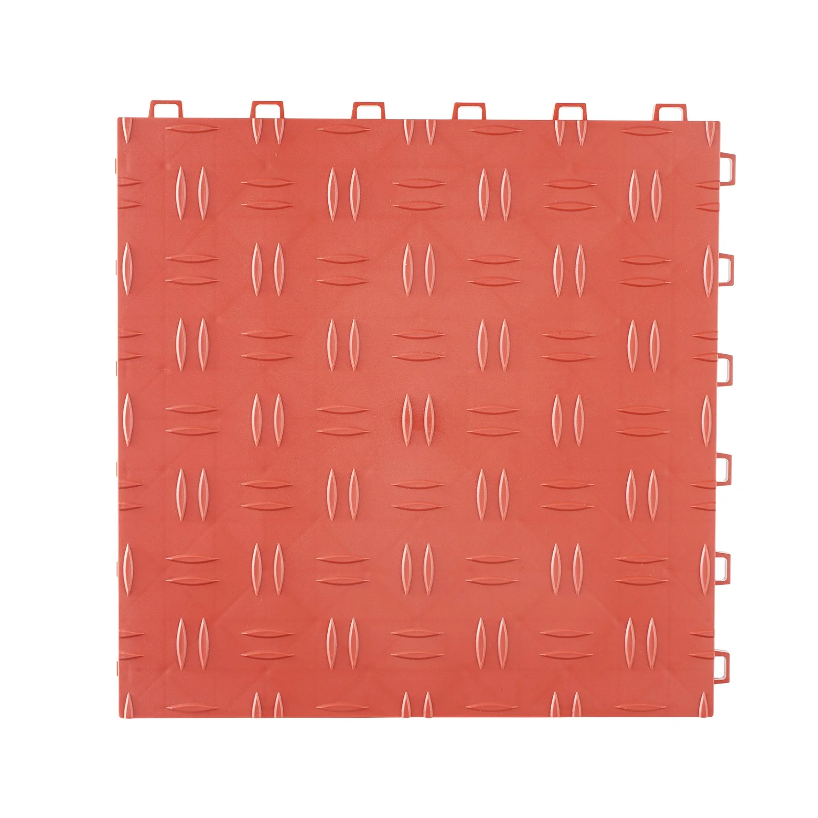 Featuring a 3D diamond-textured surface and rhombic grid bottom layer, the interlocking garage tiles effortlessly handle water stains and spills. Regular mopping and vacuuming maintain cleanliness.