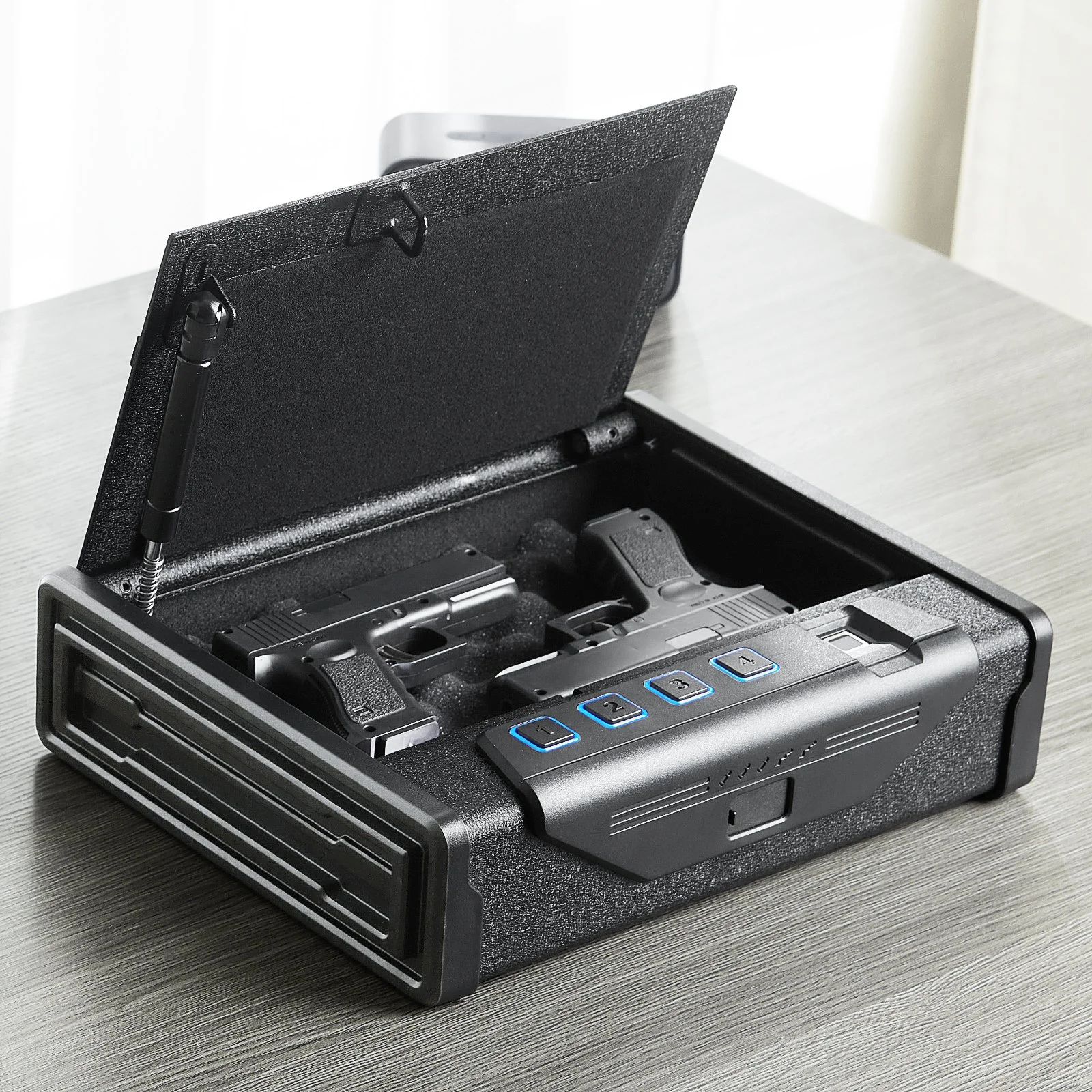 Our pistol safe utilizes three unlocking mechanisms, including fingerprints, keys, and passwords. With an unlocking time of less than 1 second and an accuracy rate exceeding 98%, you can quickly access your belongings. We also provide two keys and a choice of 4 or 6-digit password options, ensuring both security and convenience.