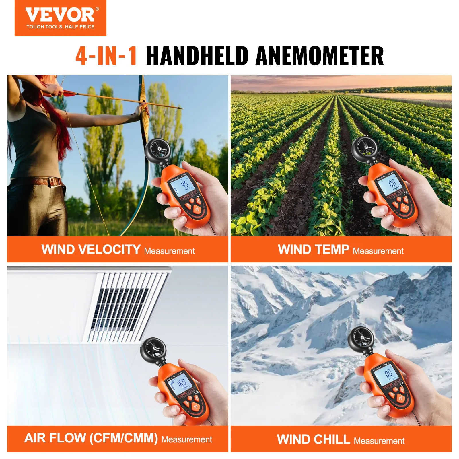Experience the power of integrated technology as our anemometer measures wind velocity, wind temp, air flow, and wind chill. From a gentle zephyr to a gusty gale, our wind meter covers the full spectrum with a wind speed range of 0 to 69.35mph (5%+0.5m/s) and a wind temperature range of 14 to 113℉ (±3.6℉). Get data you can rely on, no matter the conditions.
