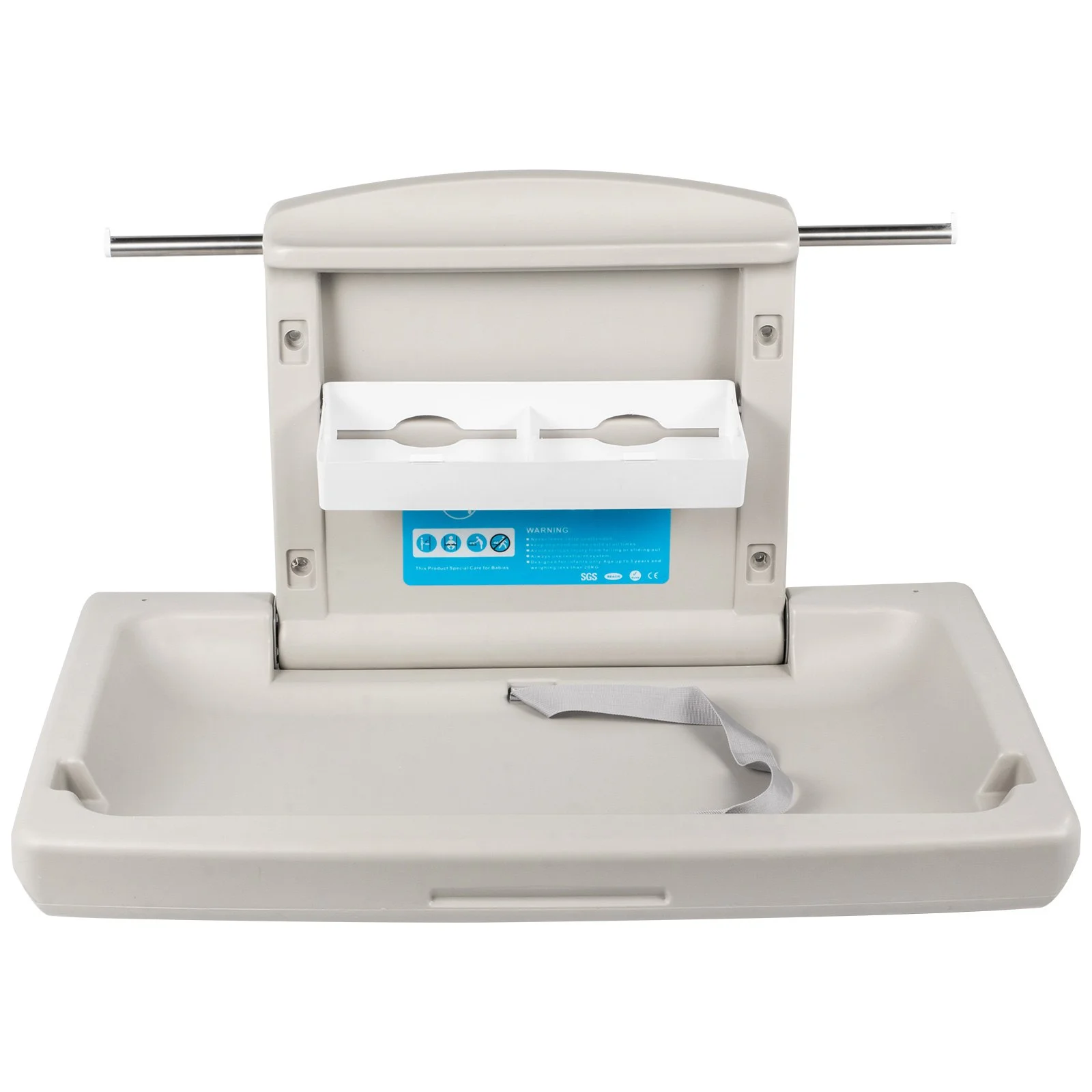 VEVOR Wall-Mounted Baby Changing Station, Horizontal Foldable Diaper Change Table with Safety Straps and Hanging Rods, Use in Commercial Bathrooms, Daycare Centers for Newborns & Infant