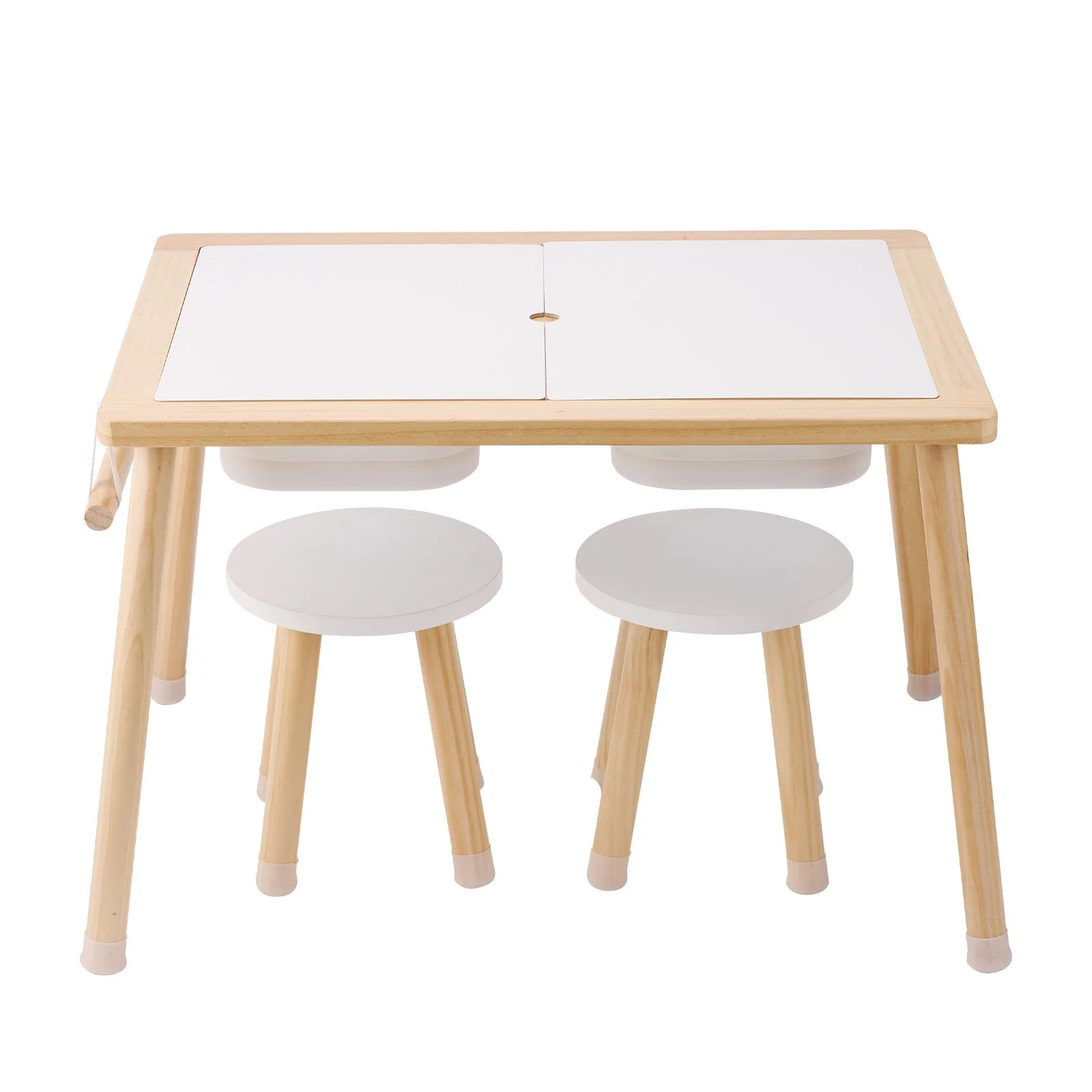 With 2 double-sided tabletops, our toddler sensory table with 2 chairs allows children to enjoy meals, draw, and engage in various activities. 2 folding storage bins can hold toys or art supplies, making it easy for kids to play with sand and water at home, while the paper roll holder enables easy access for kids to pull out drawing paper.