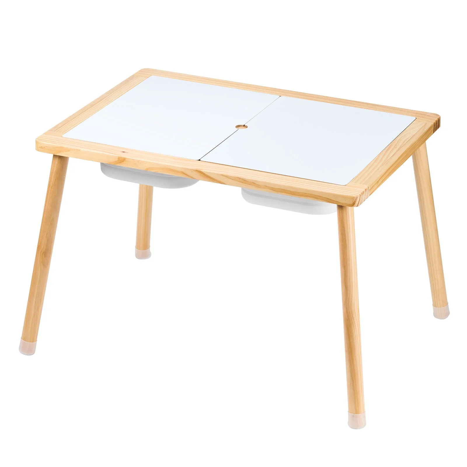 The tabletop and legs are made from natural pine wood, meticulously polished with no sharp corners or burrs, making it safe for your children. With 1-inch thickened tabletop combined with the MDF board, our sensory table for toddlers can support up to 66 lbs, ensuring long-lasting durability and reliability as your child grows and plays.
