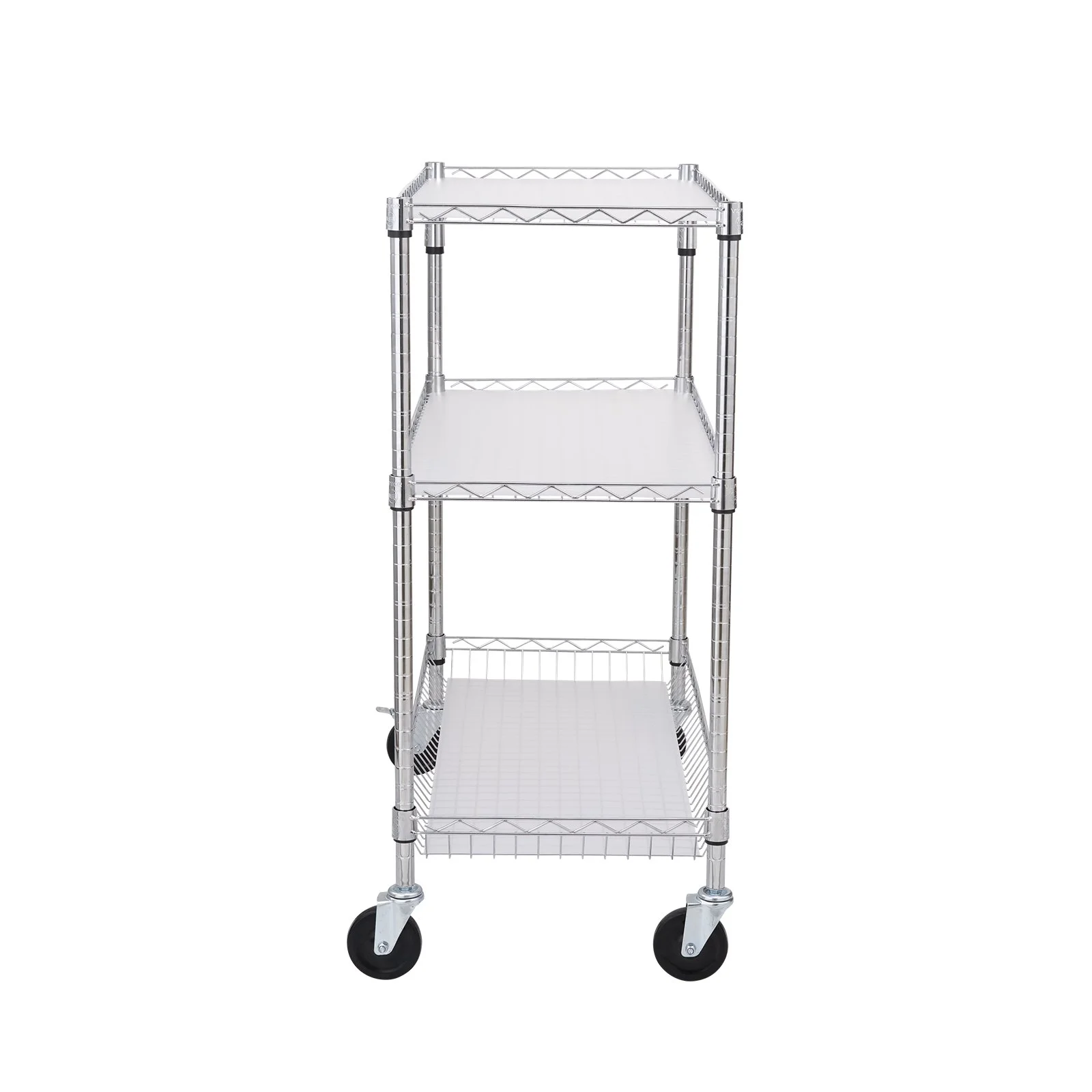 Four 4-inch silent casters are adopted on our wire rolling cart, which can effectively avoid noise during movement. You will roll without causing any disturbances. Now that sounds nice! The newly upgraded rear brake allows you to move and stop seamlessly any time and anywhere.