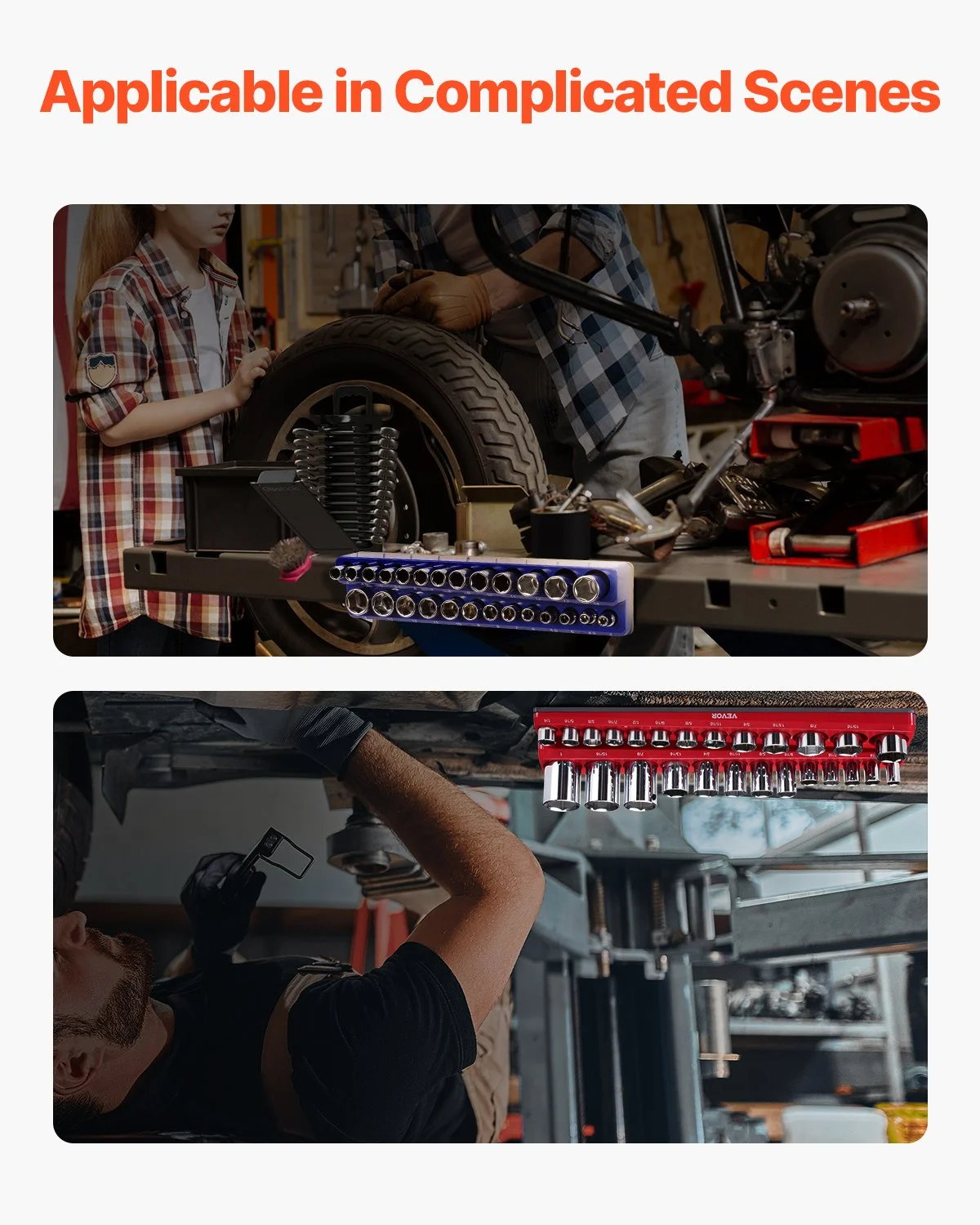 Ideal for use in 4S shops, factories, auto repair garages, appliance repairs, or home workshops, VEVOR metric & SAE socket holder kit offers practical storage solutions for various scenarios.