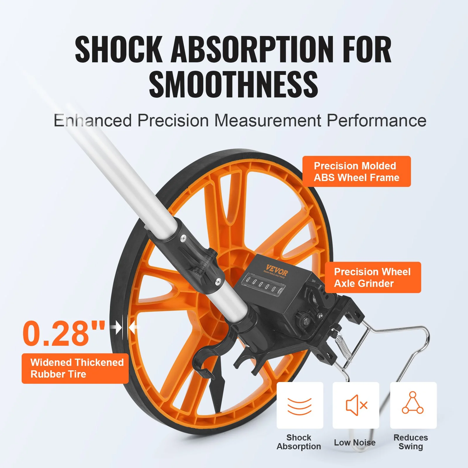 Made of ABS + aluminum oxide material, high-precision mold, smooth gear and bearing operation, seamless closure for smooth measurements without interruptions. One-key reset button is robust and durable, with enhanced support and perfect joints. Rubber tire + ABS wheel frame, original position markers, making it a reliable partner for your measurements.