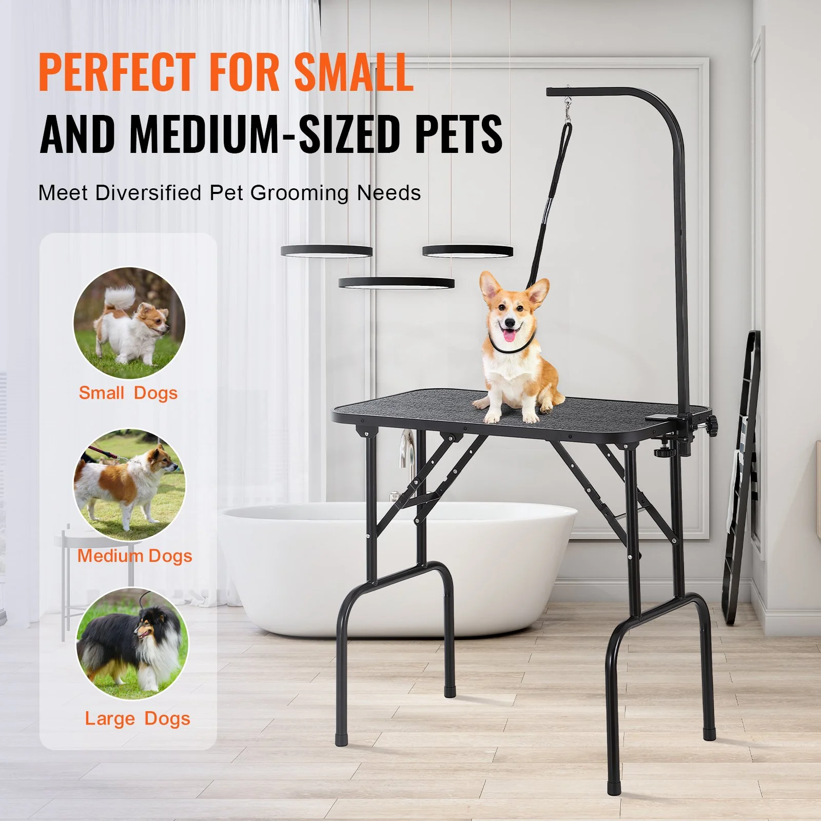VEVOR Pet Grooming Table Arm with Clamp, 915 x 610mm Dog Grooming Station, Foldable Pets Grooming Stand for Medium and Small Dogs, Free No Sit Haunch Holder with Grooming Loop, Bearing 149.7kg