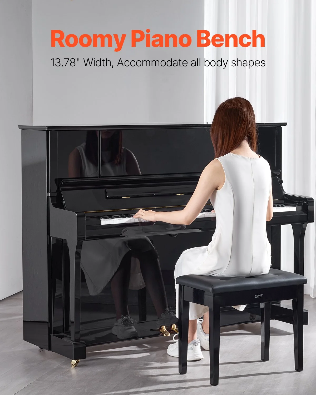 Designed with a 13.78" wide seat, this piano seat offers plenty of space for musicians of all body shapes, ensuring a comfortable seating experience during long practice sessions. Whether you're practicing for hours or enjoying a quick session, the generously padded seat provides comfort and support.