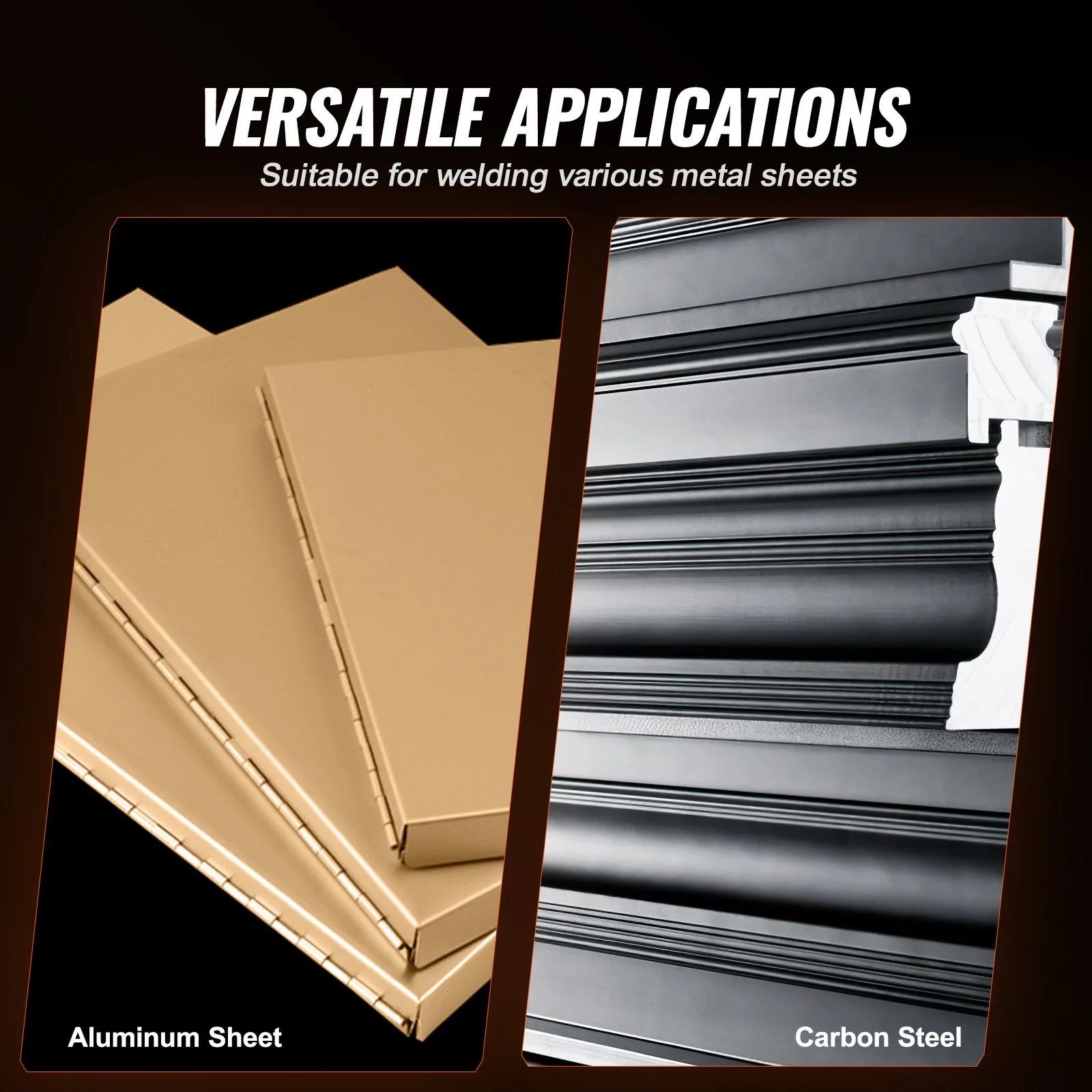 Seamlessly weld metal sheets up to 1/8 inch thick, VEVOR portable spot welder can handle carbon steel and aluminum sheets. Tackle diverse projects with ease, ensuring top-notch spot welding quality and performance.