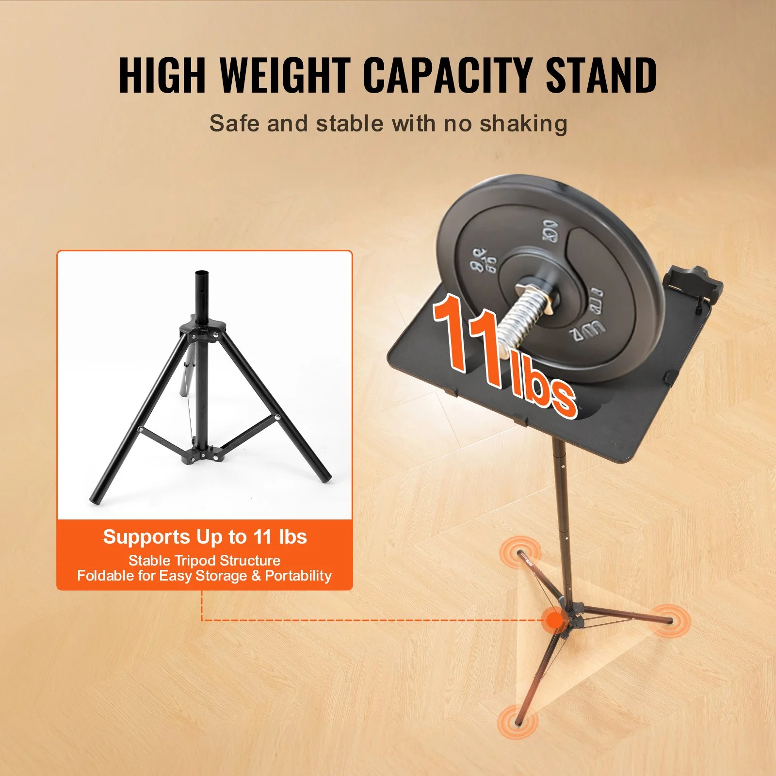 This tripod projector stand supports laptops, recorders, projectors, and more, making it perfect for musicians, teachers, and students-just plug and play!