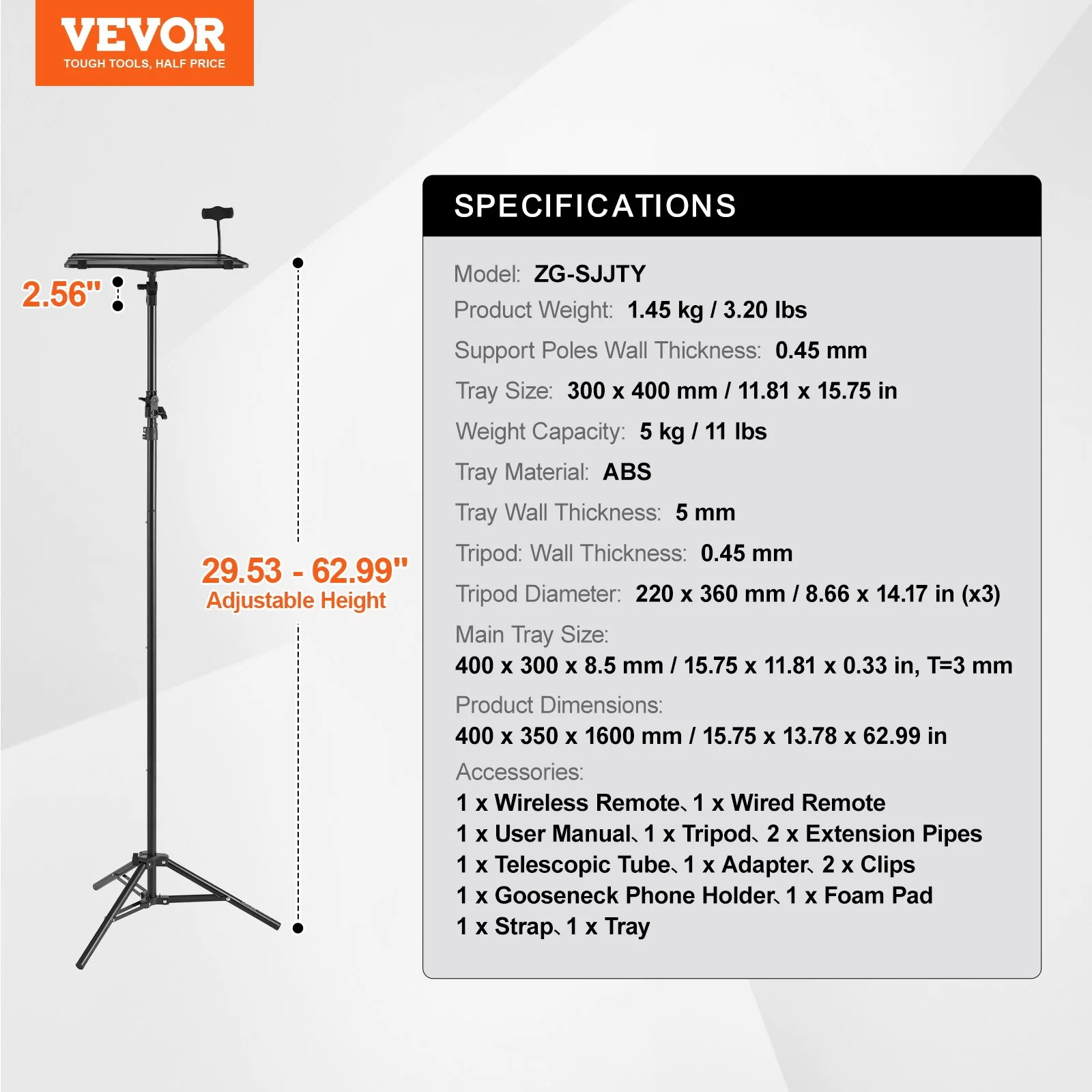 Easily adjustable from 26.97 to 62.99 inches, this stand adapts seamlessly for presentations, teaching, or meetings.