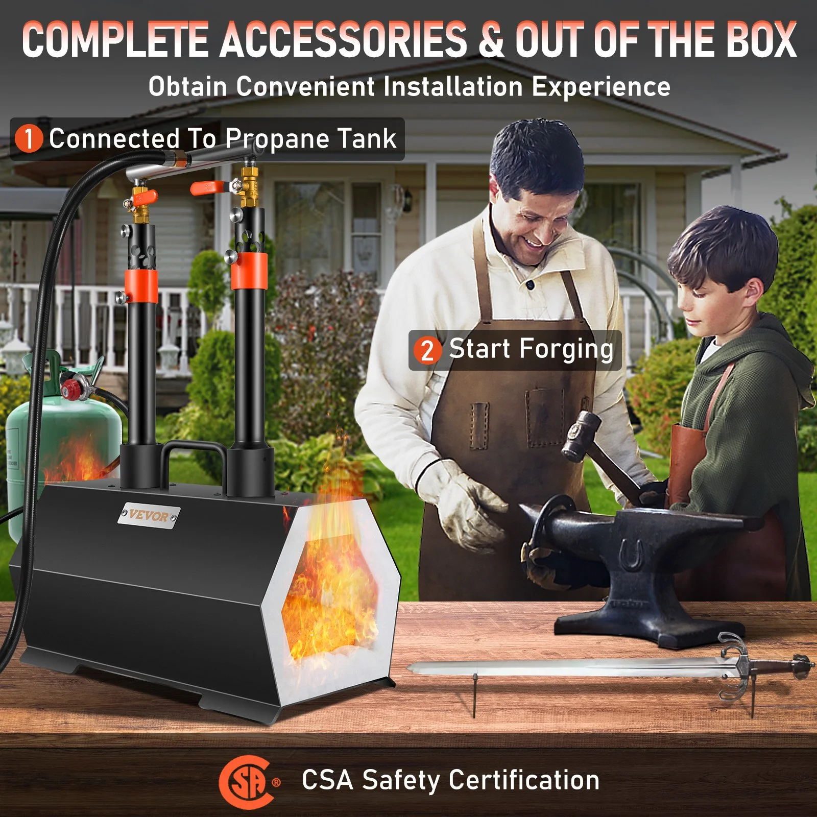 All key accessories are pre-installed, making it effortless to get started. The farrier forge is ready for use after unpacking. After connecting to the propane tank, you can create your blacksmithing works immediately. It's that simple!