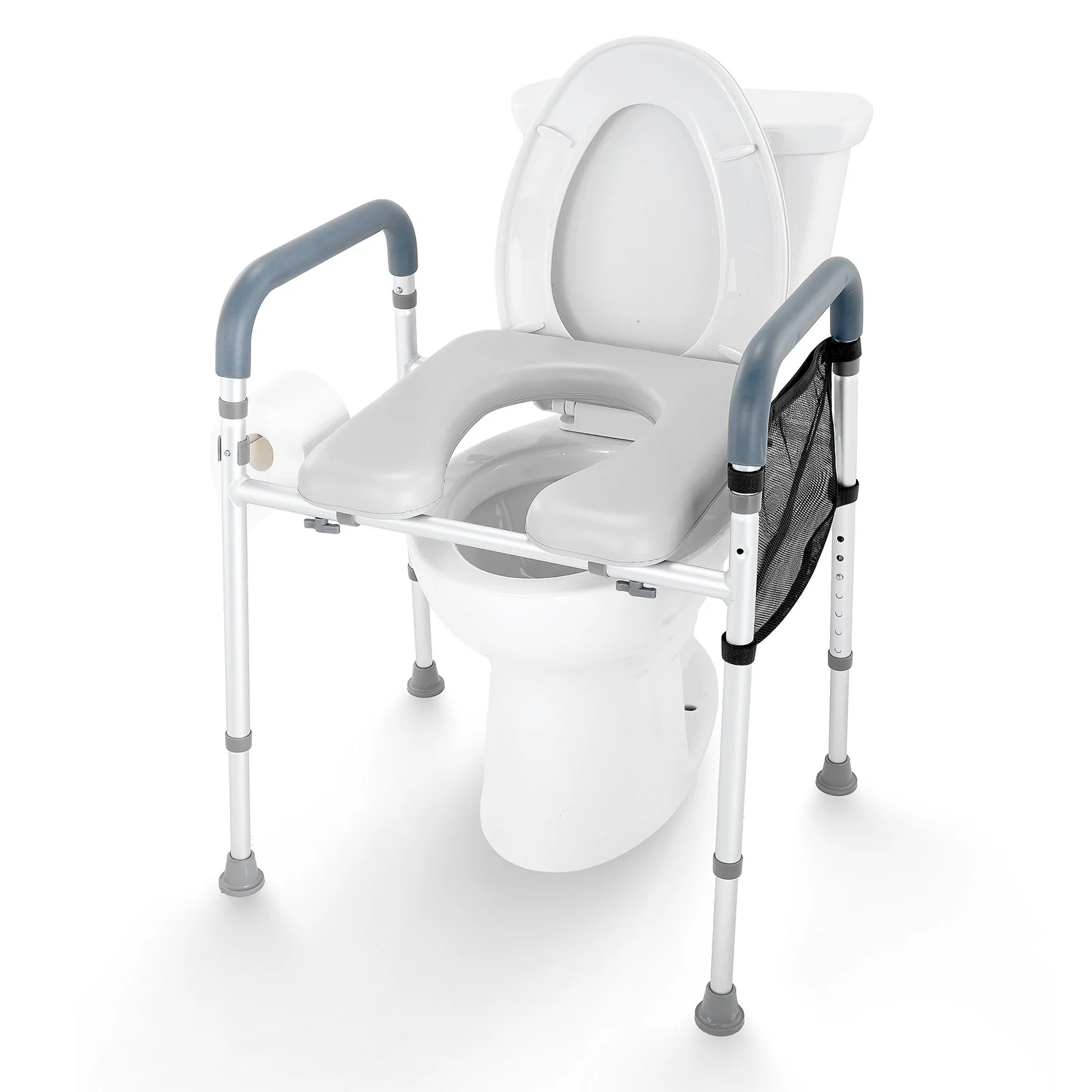 The floor-based raised toilet seat only requires assembly of the legs, making it highly compatible with most standard round and elongated toilets.