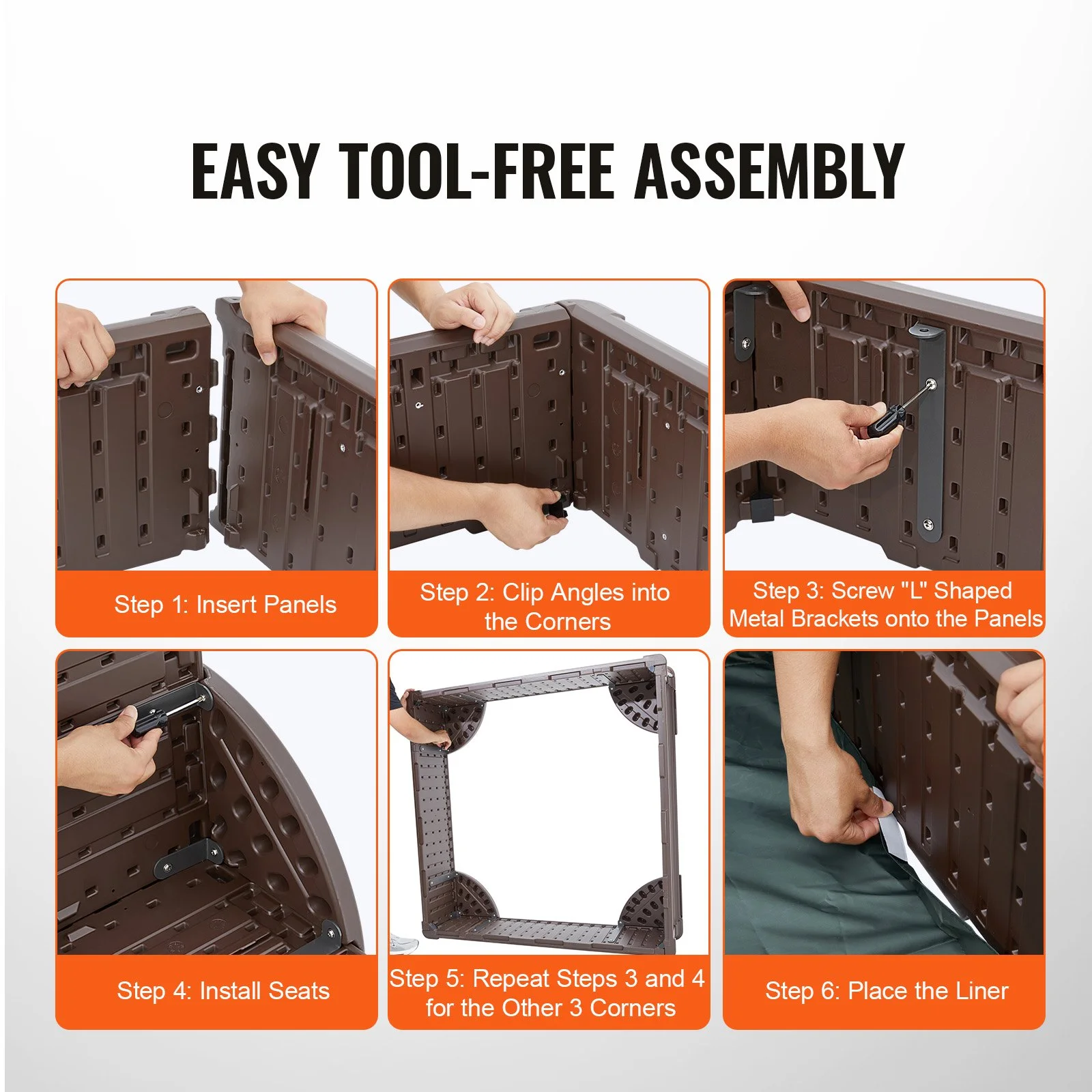 Our kids sandbox is easy to assemble with no tools required. Simply insert the panels into the slots, place the liner, and attach the seats. Clear installation instructions are included to help you create the perfect children's play space in no time.