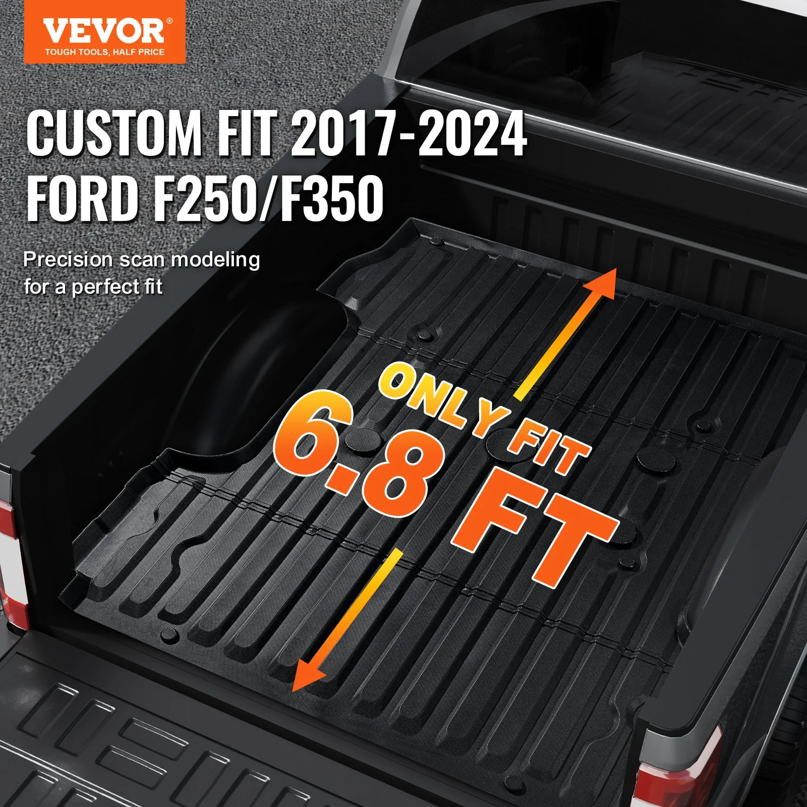 This truck bed mat is specifically designed for 2017-2024 Ford F250/F350, compatible only with 6.8 FT bed lengths. It features a precise 3D contour based on original vehicle data for a better fit. Please confirm your vehicle's compatibility. If there are creases after receiving it, simply place a heavy object on it for a while to restore it.