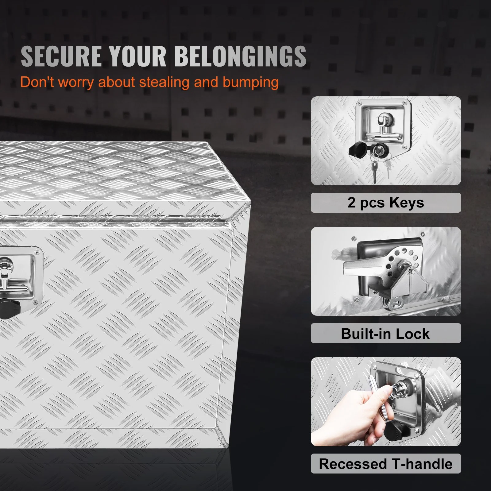 The embedded T-shaped handle of this underbody box is designed without bulge, making it resistant to scratches and hits during driving. The box is lockable and comes with two exclusive keys to ensure the security of your items. Increase your underbody storage space with this truck box and have peace of mind knowing your belongings are safe from theft.
