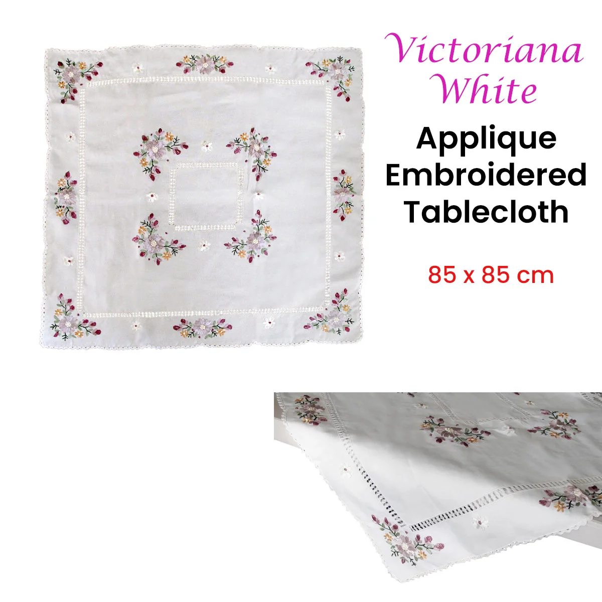 This Victoriana White Applique Embroidered Table Topper 85 x 85 cm is perfect for everyday use or special occasions that will add elegance to your table that needs style update. This table topper features applique and floral embroidery design in soft colour hues of lilac, white, green, pink, yellow, and mauve that will make your table look brand new again. It is made from strong and wrinkle resistant polyester fabric for long lasting use.