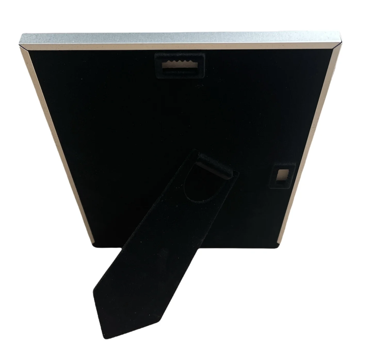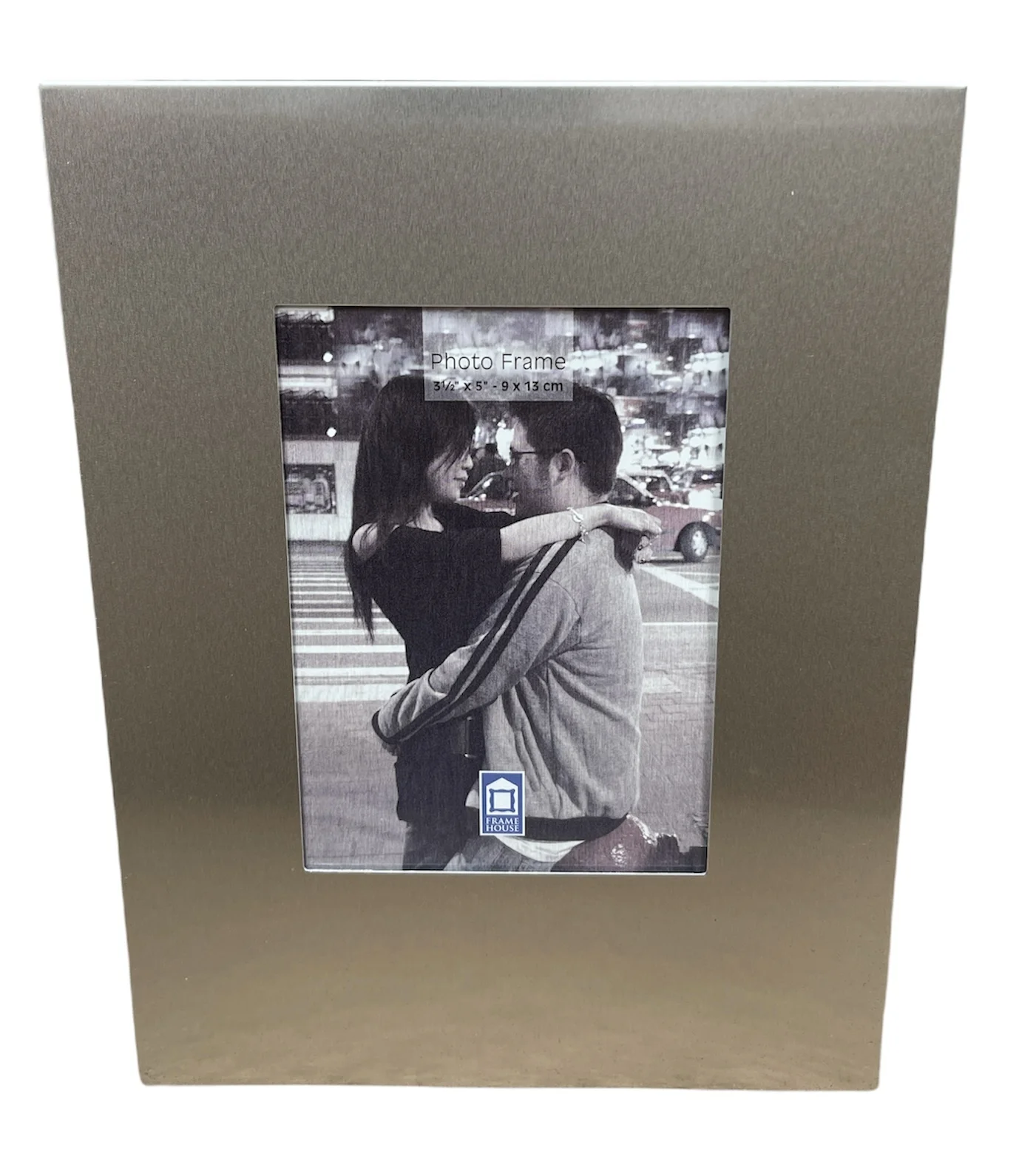 Stylish photo frame with an attractive brushed aluminium finish and black velvet backing with table stand. Holds9 x 13cm photos.