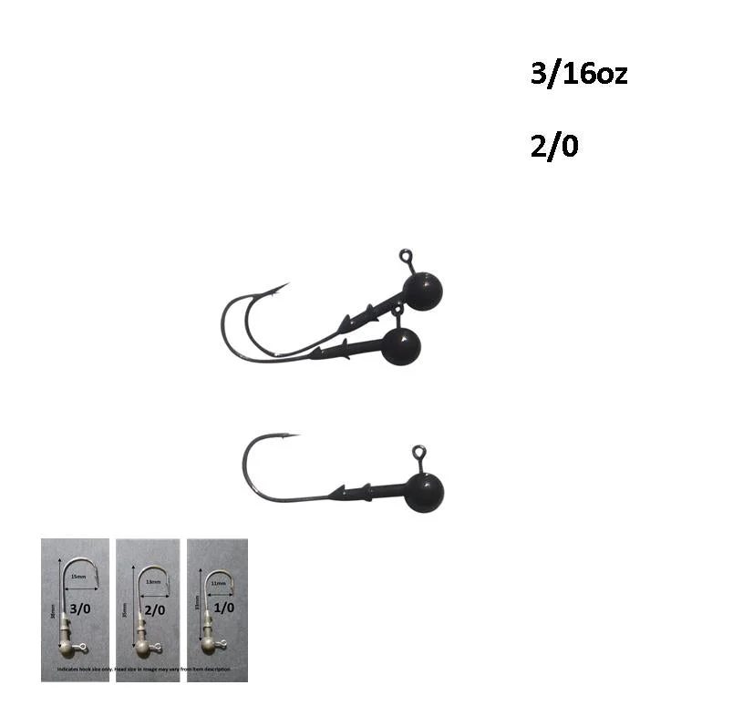 • Larger Hook Sizes Available: Uncommon larger hook options for the 1/16oz heads, with 1/0 to 3/0 sizes available to match different soft plastic patterns and sizes.