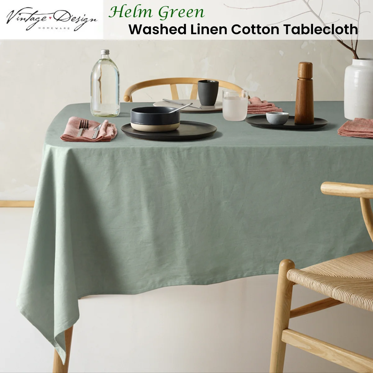 Elevate your dining space with our Vintage Design Homewares Helm Green Washed Linen Cotton Tablecloth. This beautiful piece it's the perfect balance between style and usability. Layer your dining table with our matching Vintage Design Washed Helm Linen Cotton napkins.