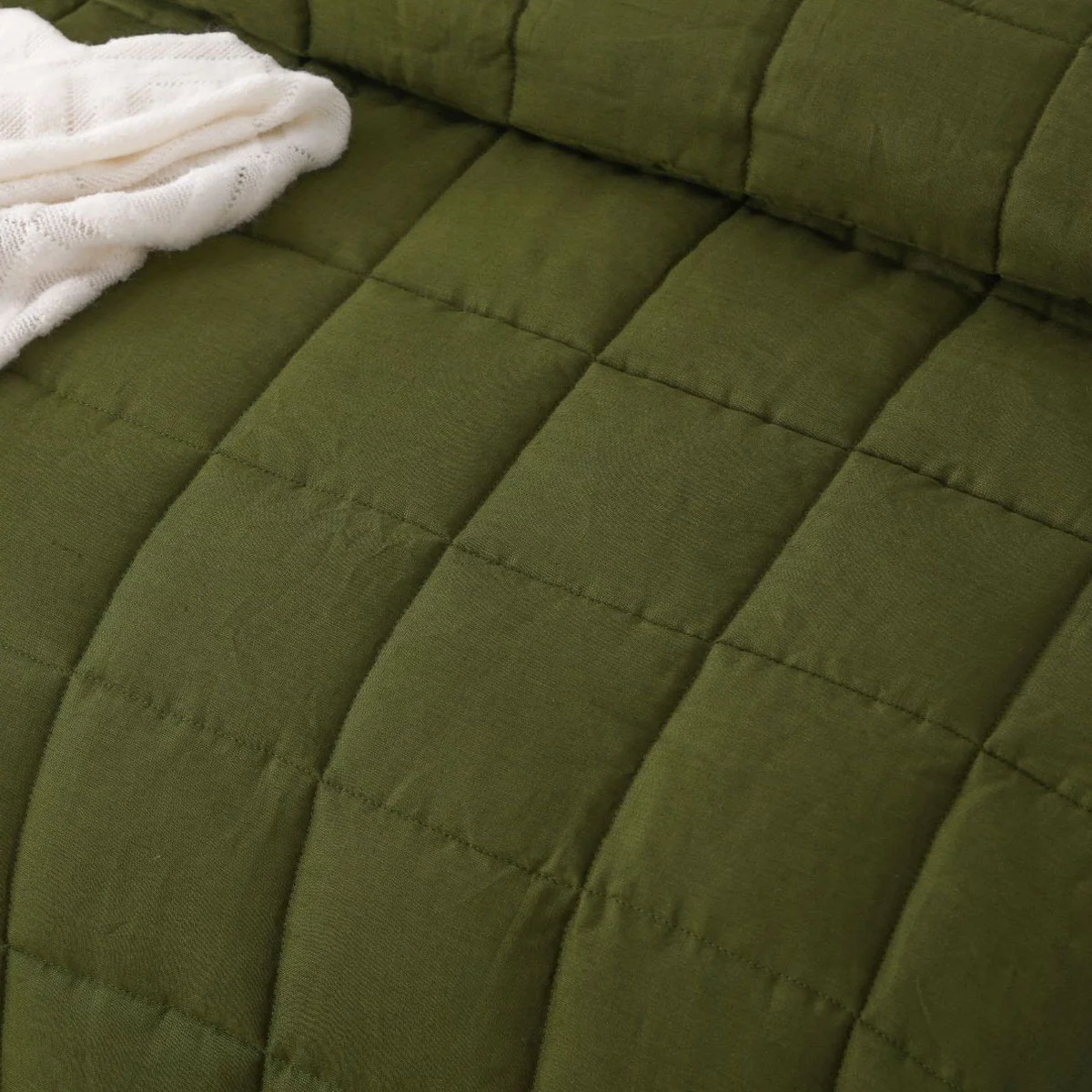 Enhance the look of your bedroom with this simple yet elegant Olive French Linen Coverlet Set by Vintage Design Homewares. It features quilted squares design in soft colour tones that will add classy style to any bedroom space. Coverlet can add extra layer to your bed for additional warmth or act like a blanket. It is made from quality and soft touch Linen fabric and Polyester filling for a cosy night's sleep.